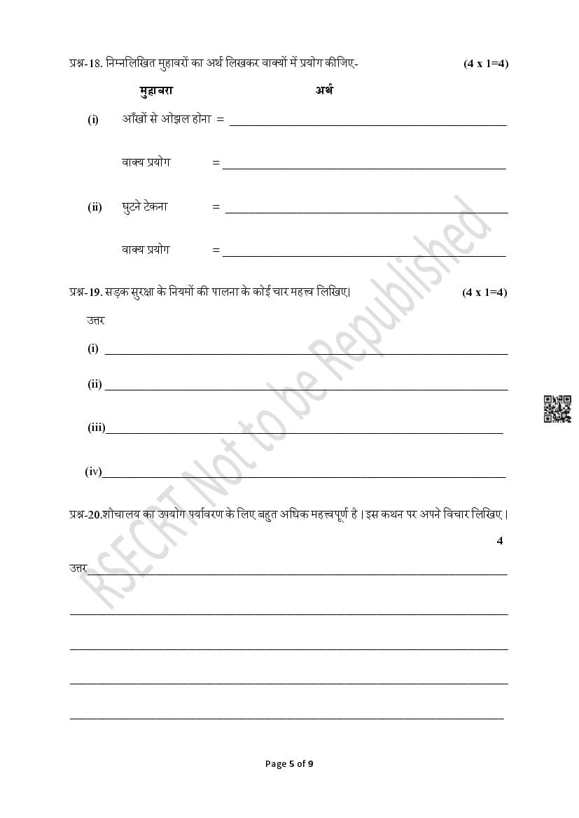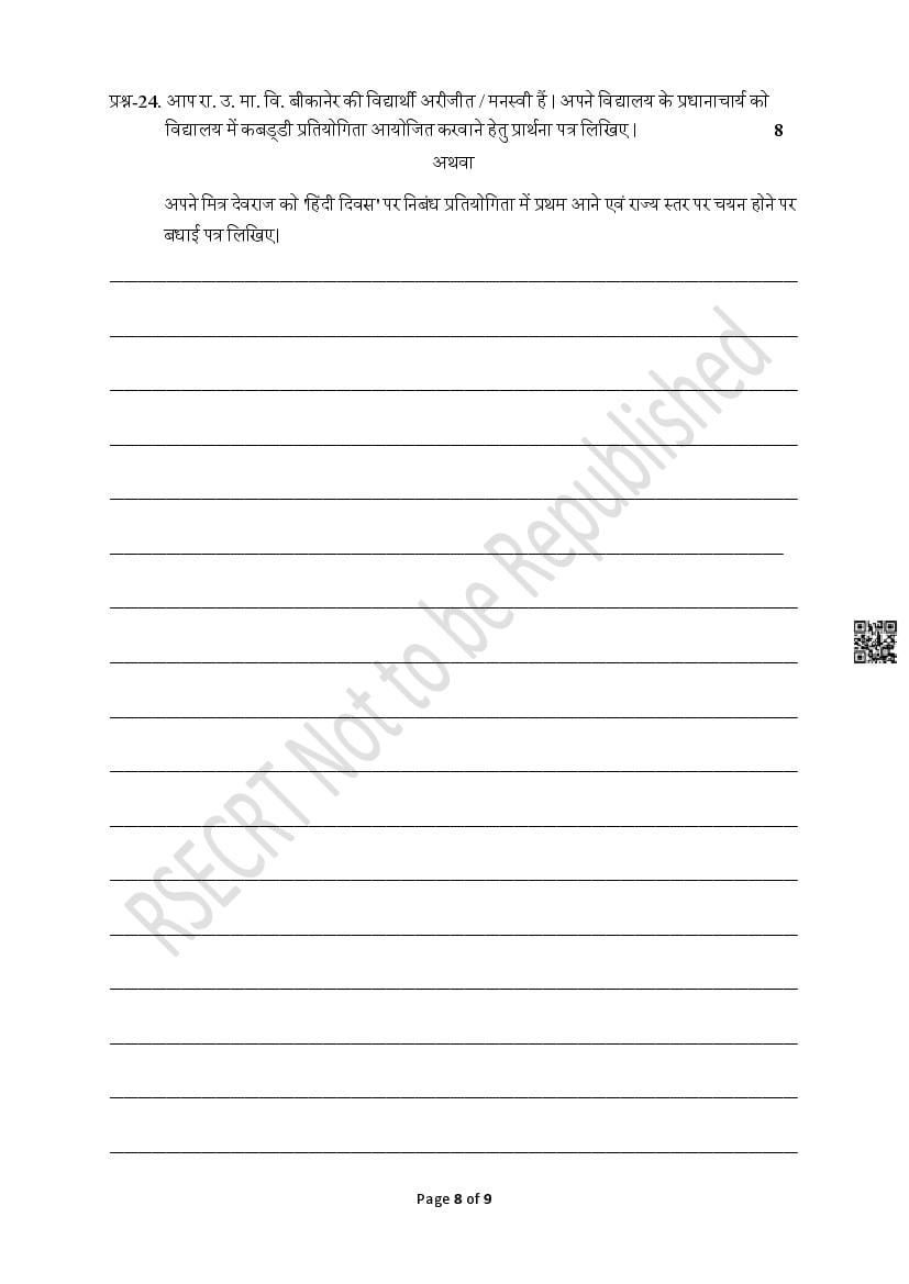 RBSE Class 8 Hindi Model Paper 20245 PDF