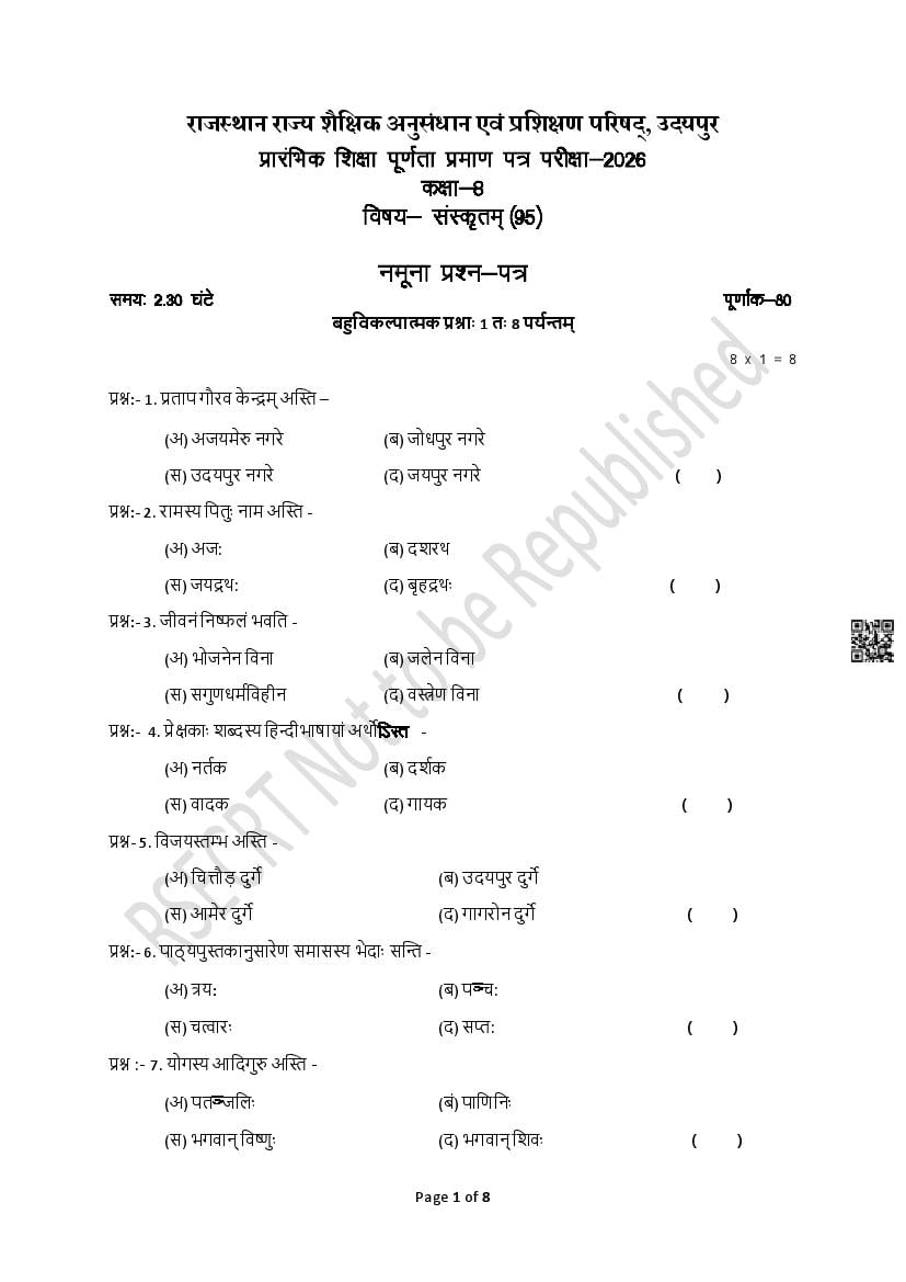 Rajasthan Board 8th Sanskrit Model Paper 2026 – An Overview