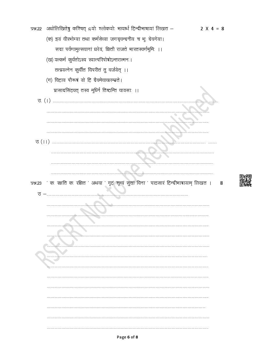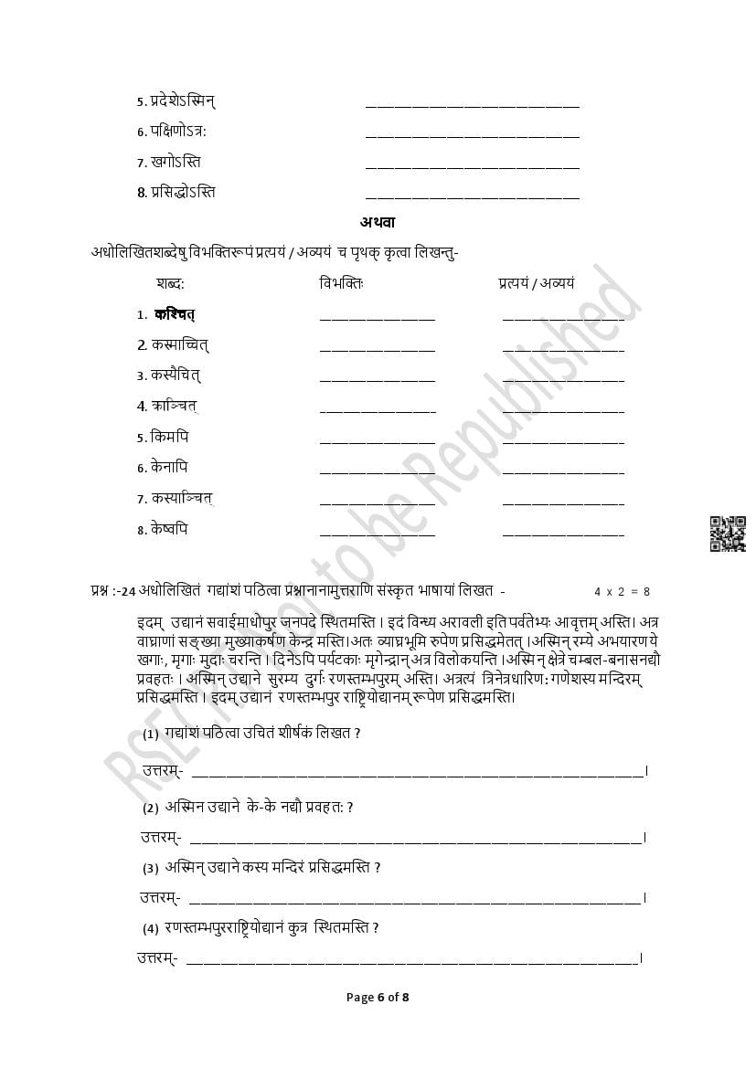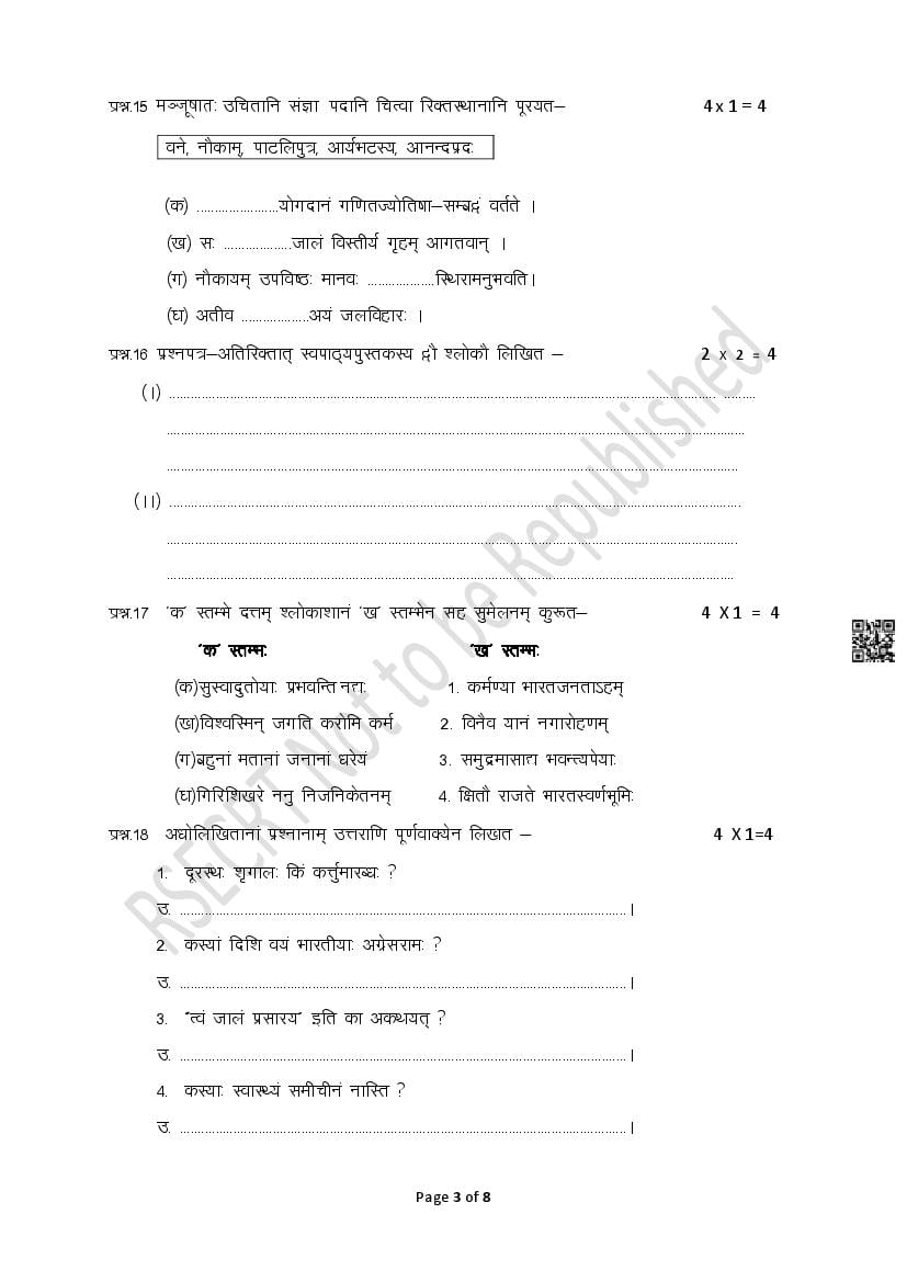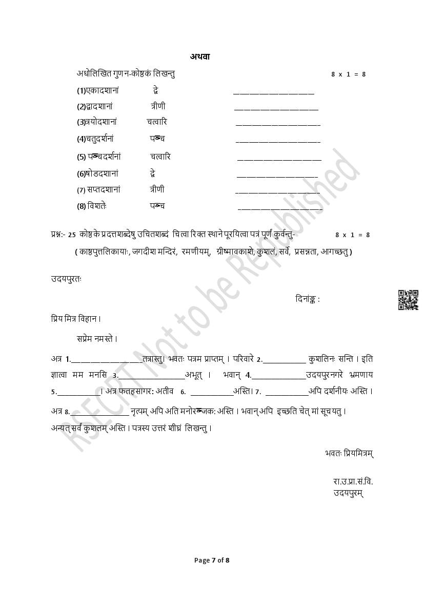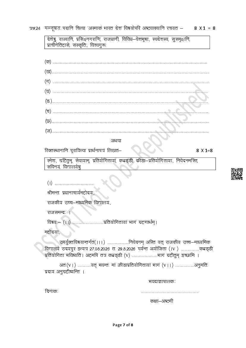 The Rajasthan Board model paper for class 8 Sanskrit is as follows.