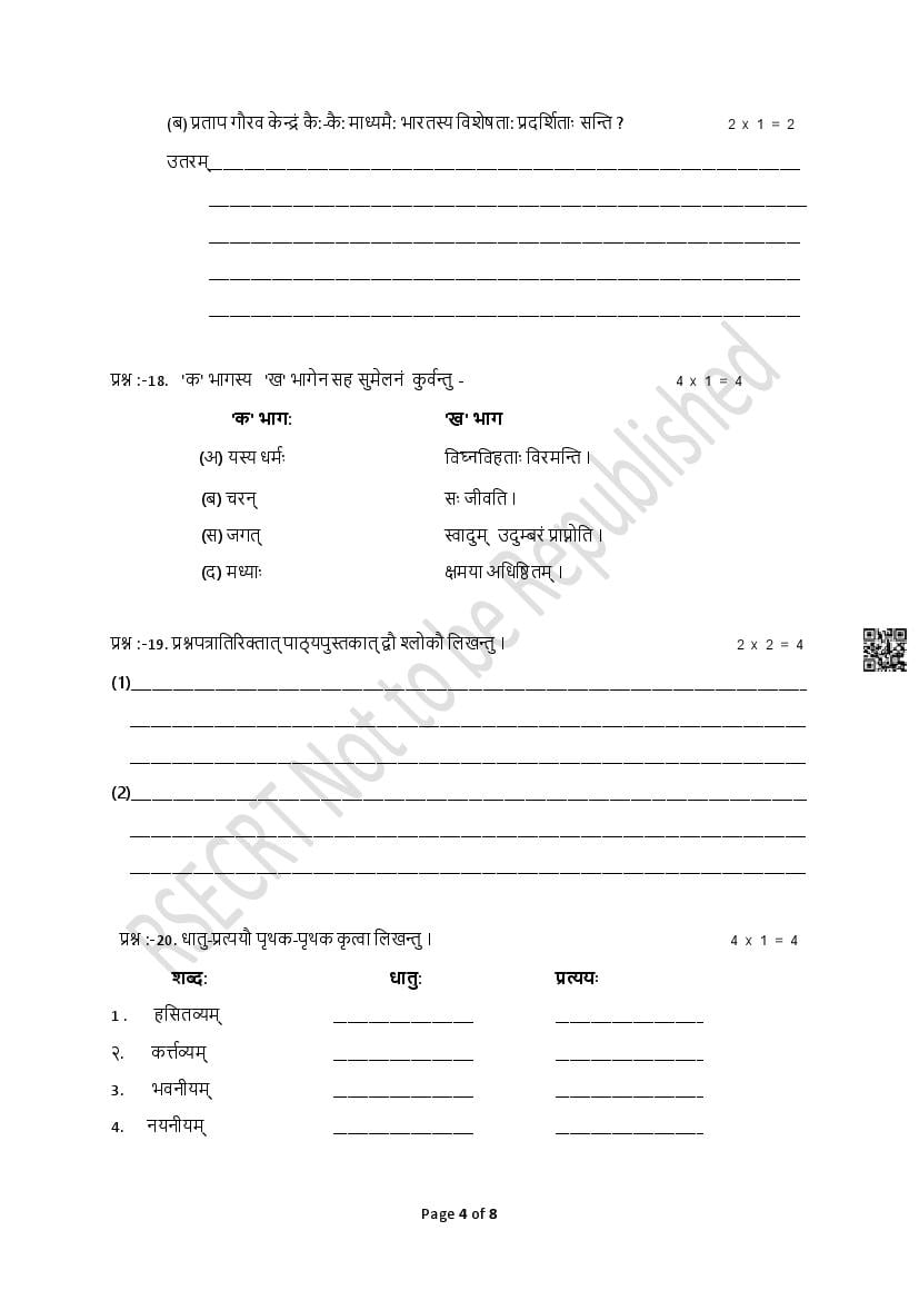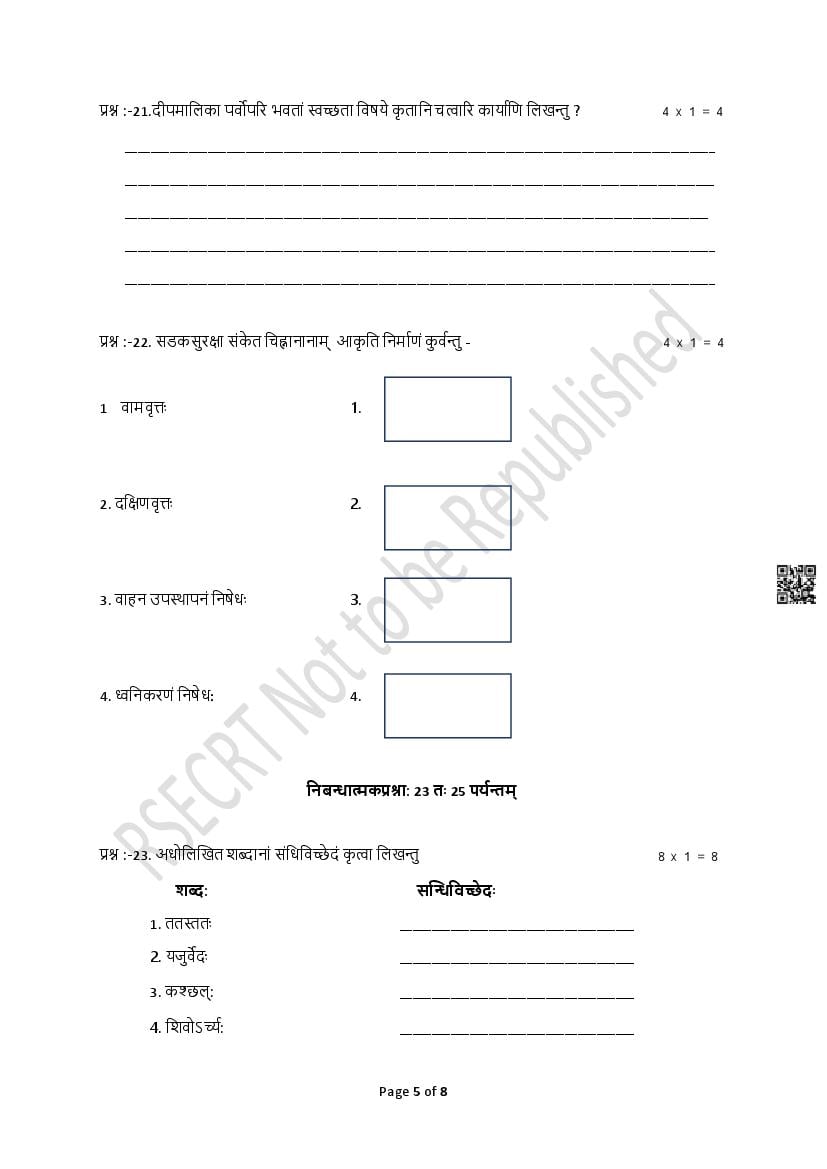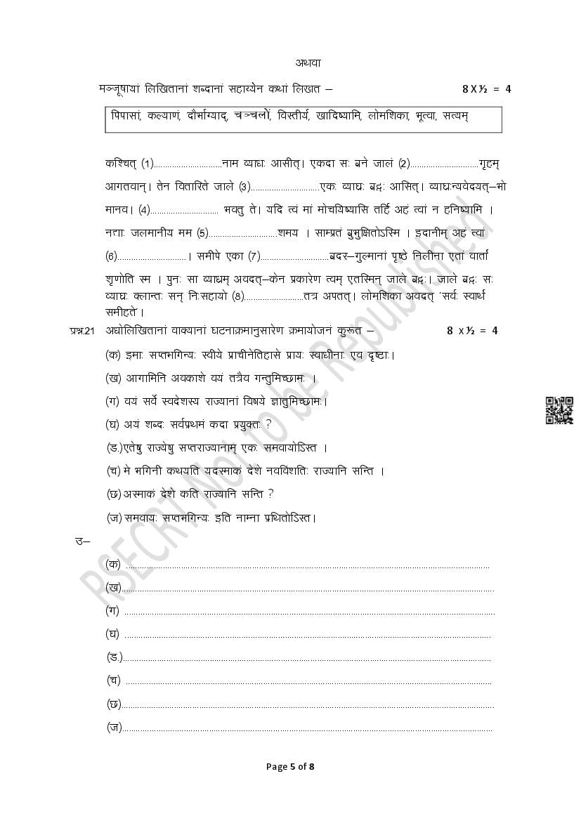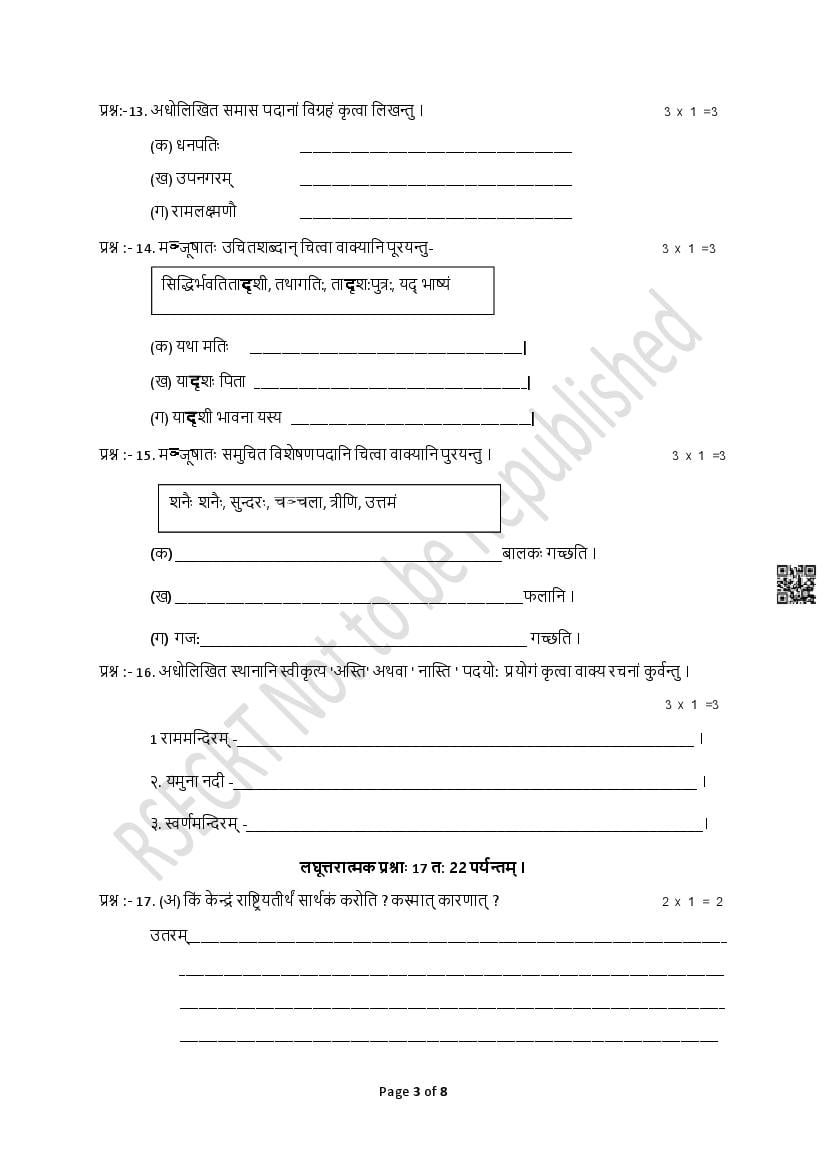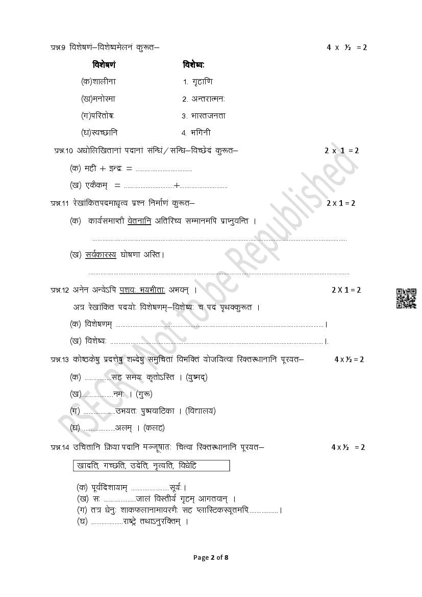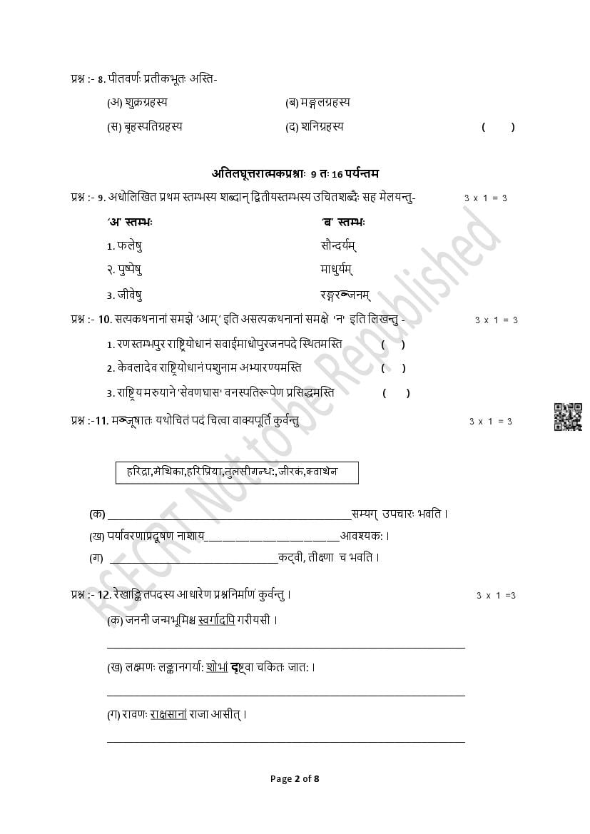 The Rajasthan Board model paper for class 8 Sanskrit is as follows.