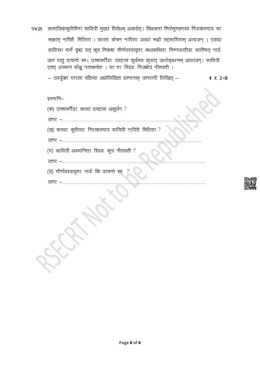 RBSE Class 8 Sanskrit Model Paper 20245 PDF