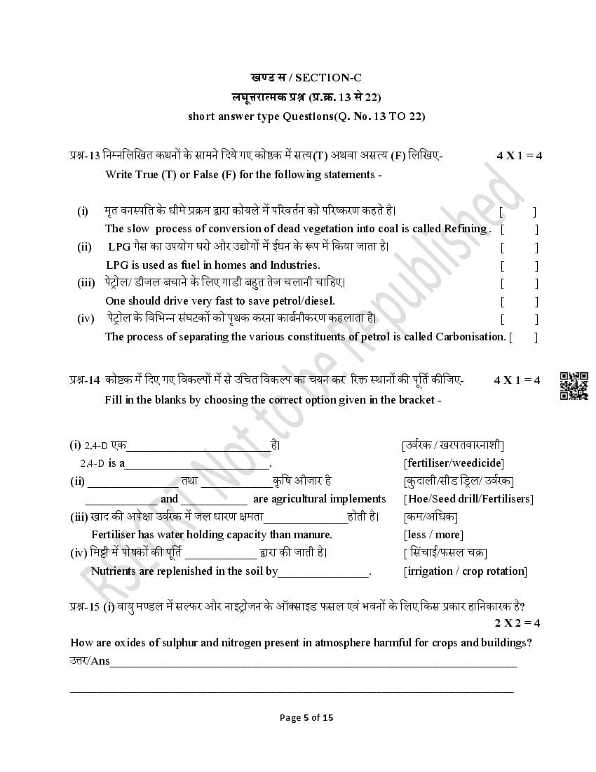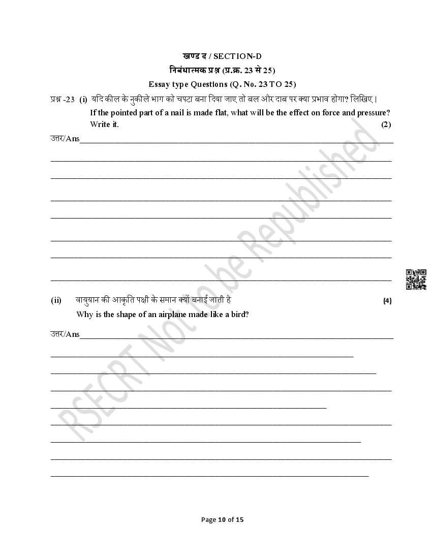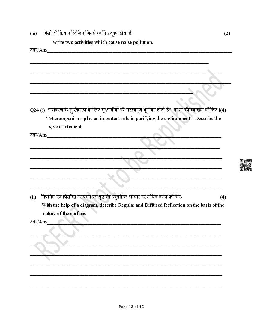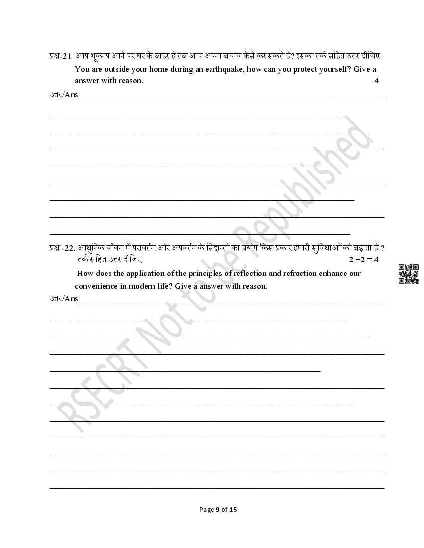 - Rajasthan Board Class 10th Model Question Papers