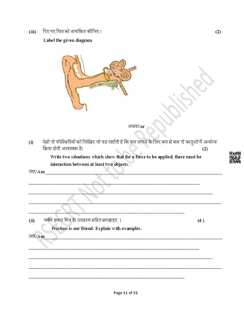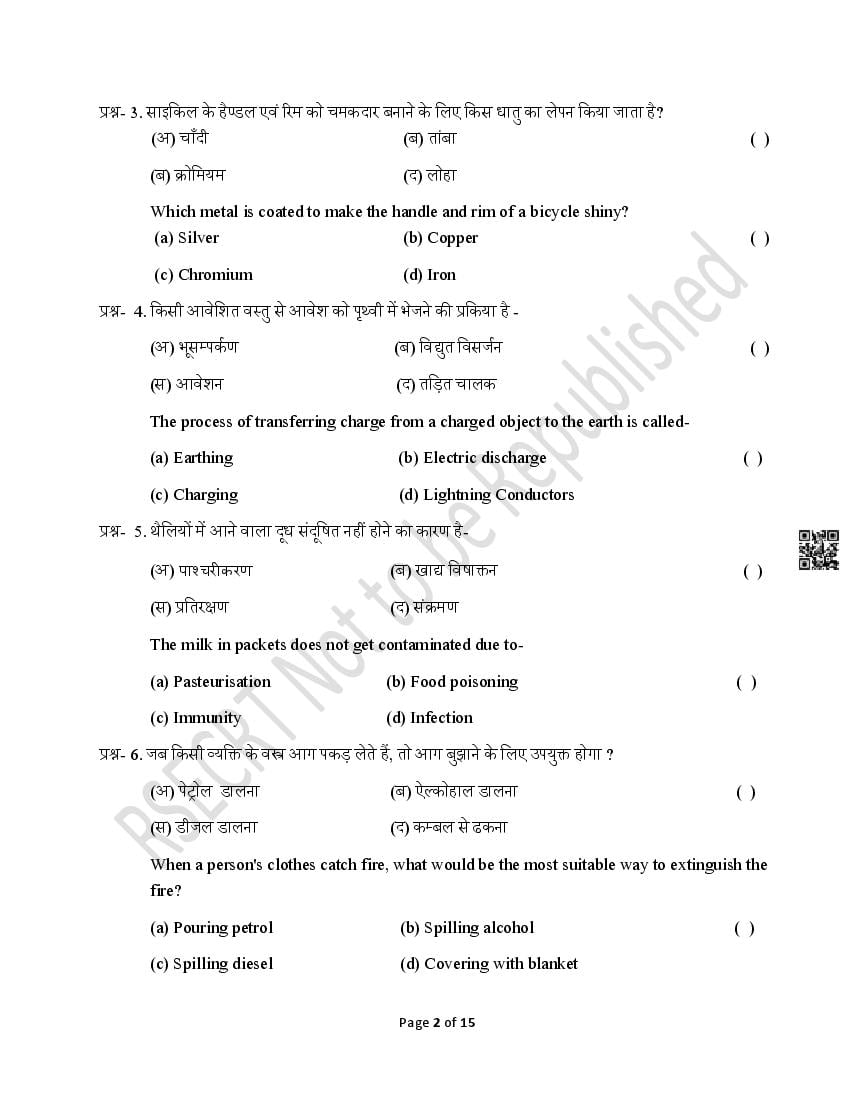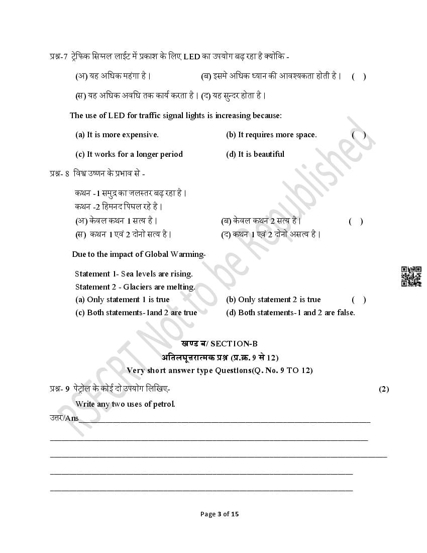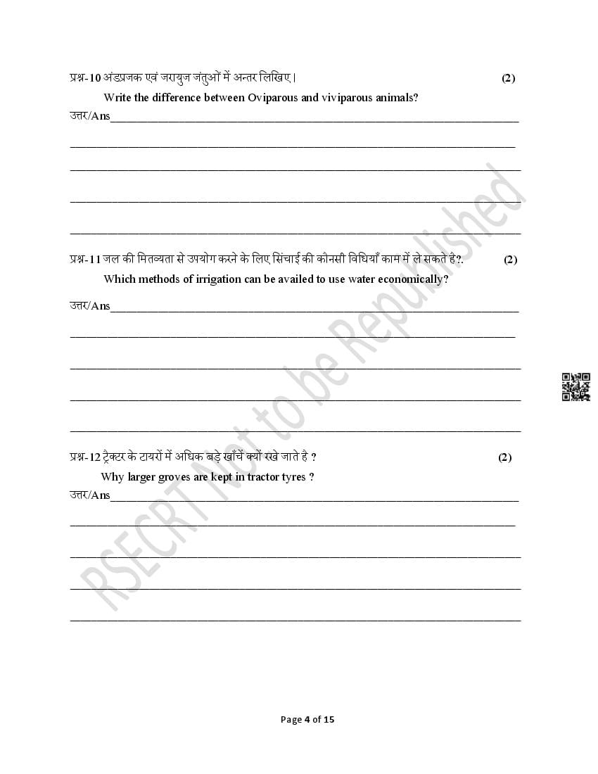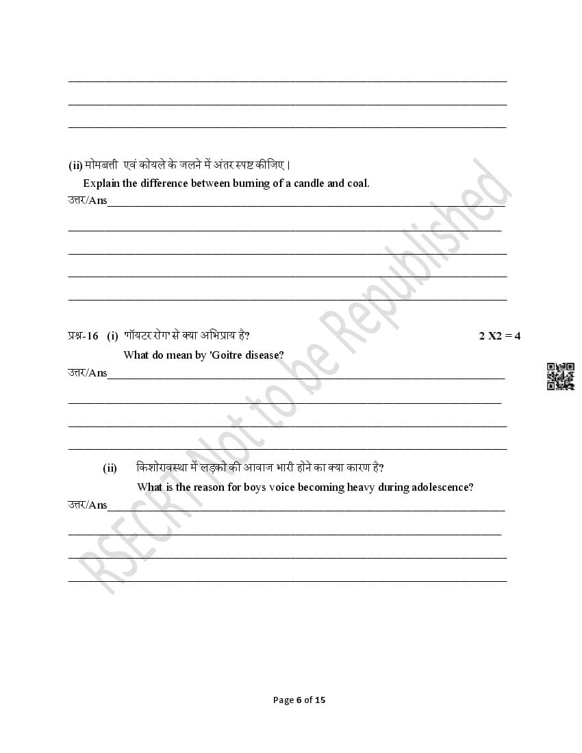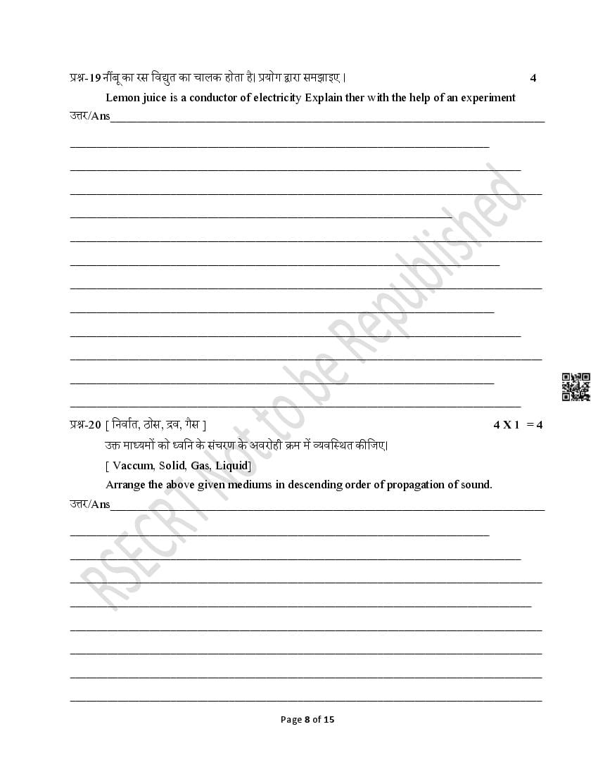 The Rajasthan Board model paper for class 8 Science is as follows.