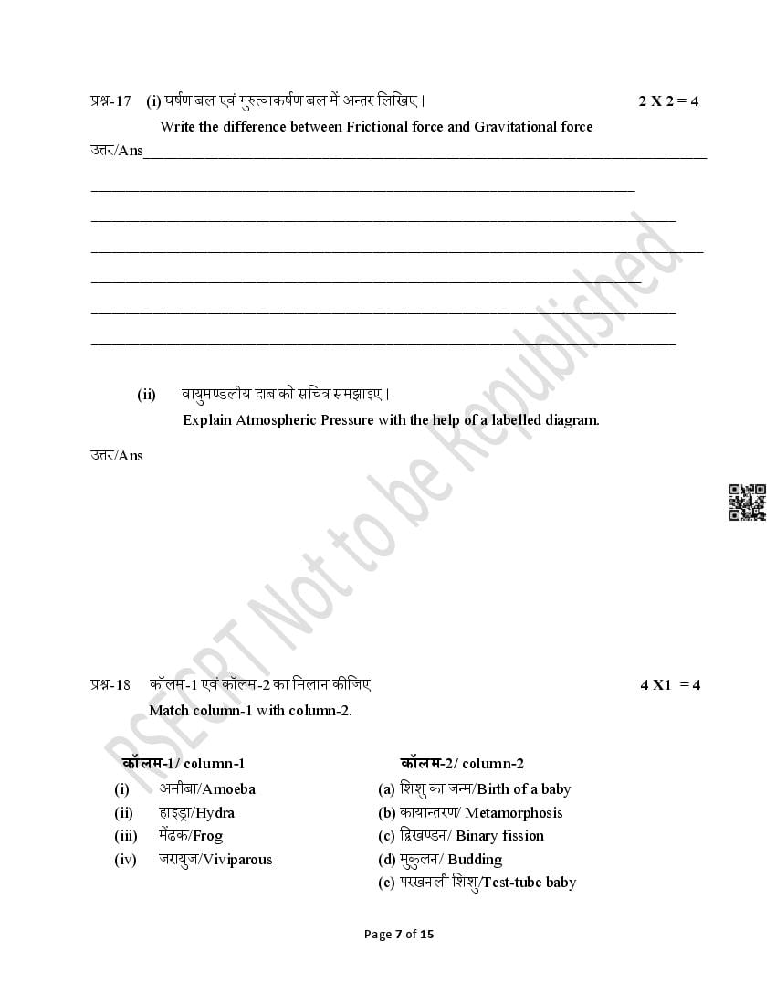 - Rajasthan Board Class 7th Model Question Papers