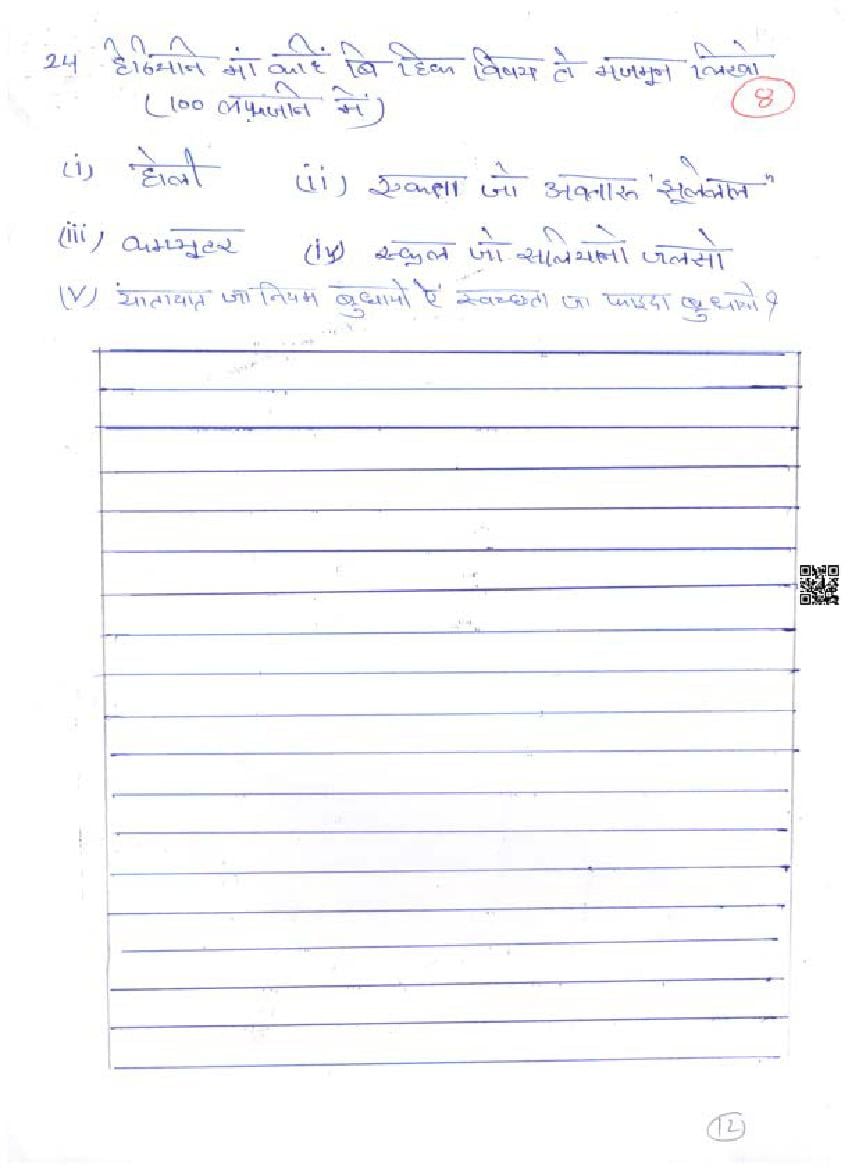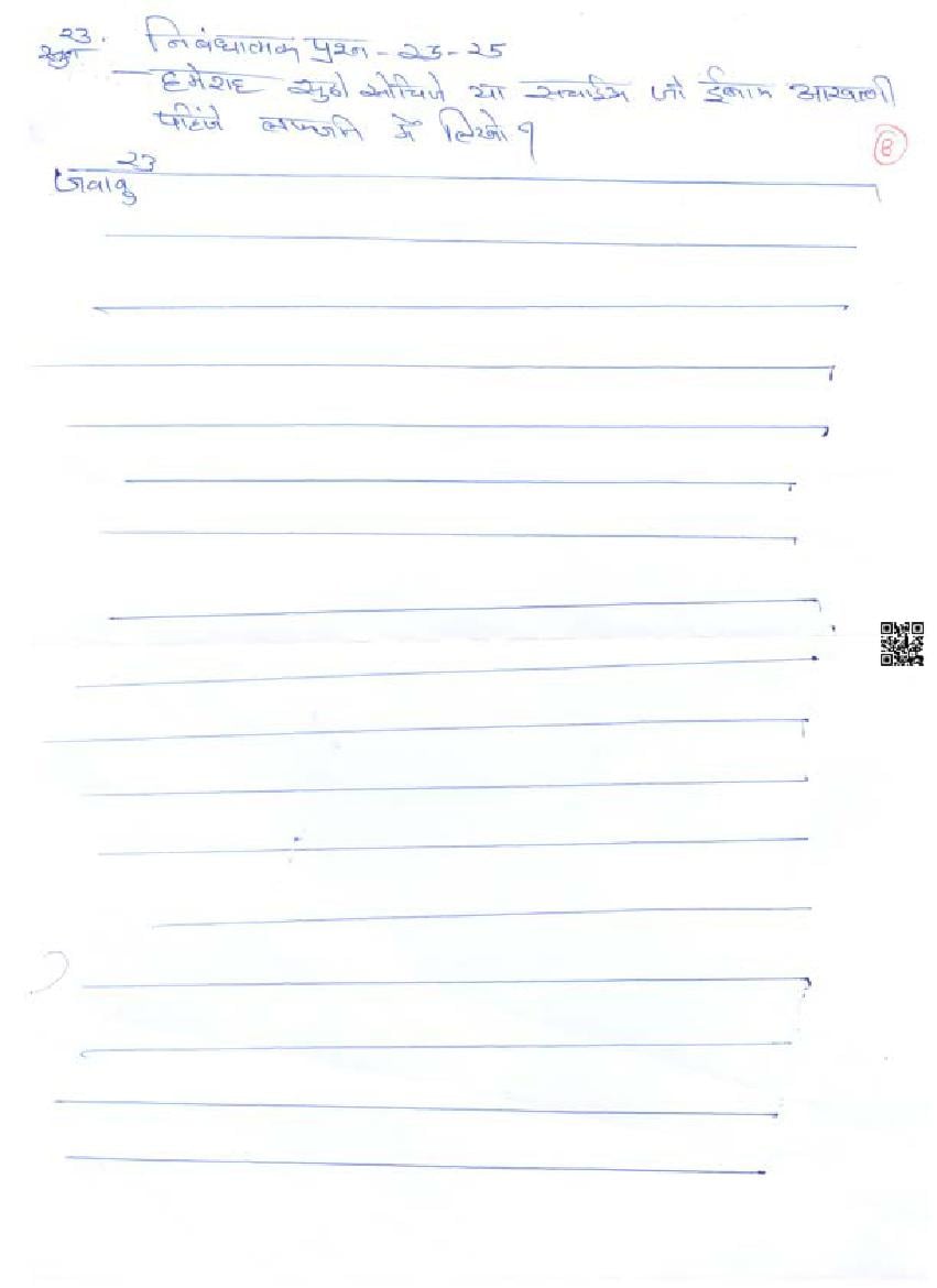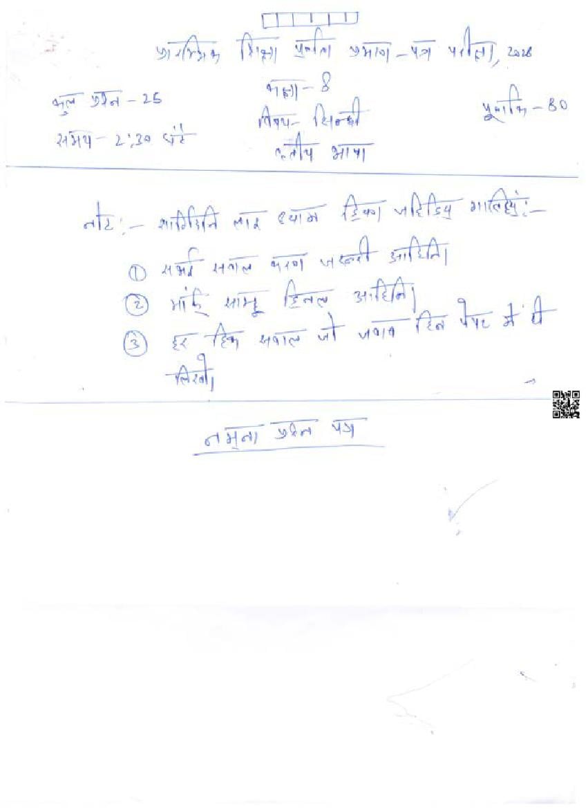 - RBSE Class 8 Sample Paper Hindi