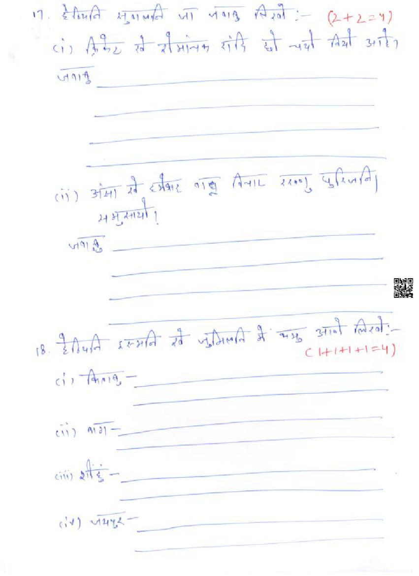- Rajasthan Board Class 3rd Model Question Papers