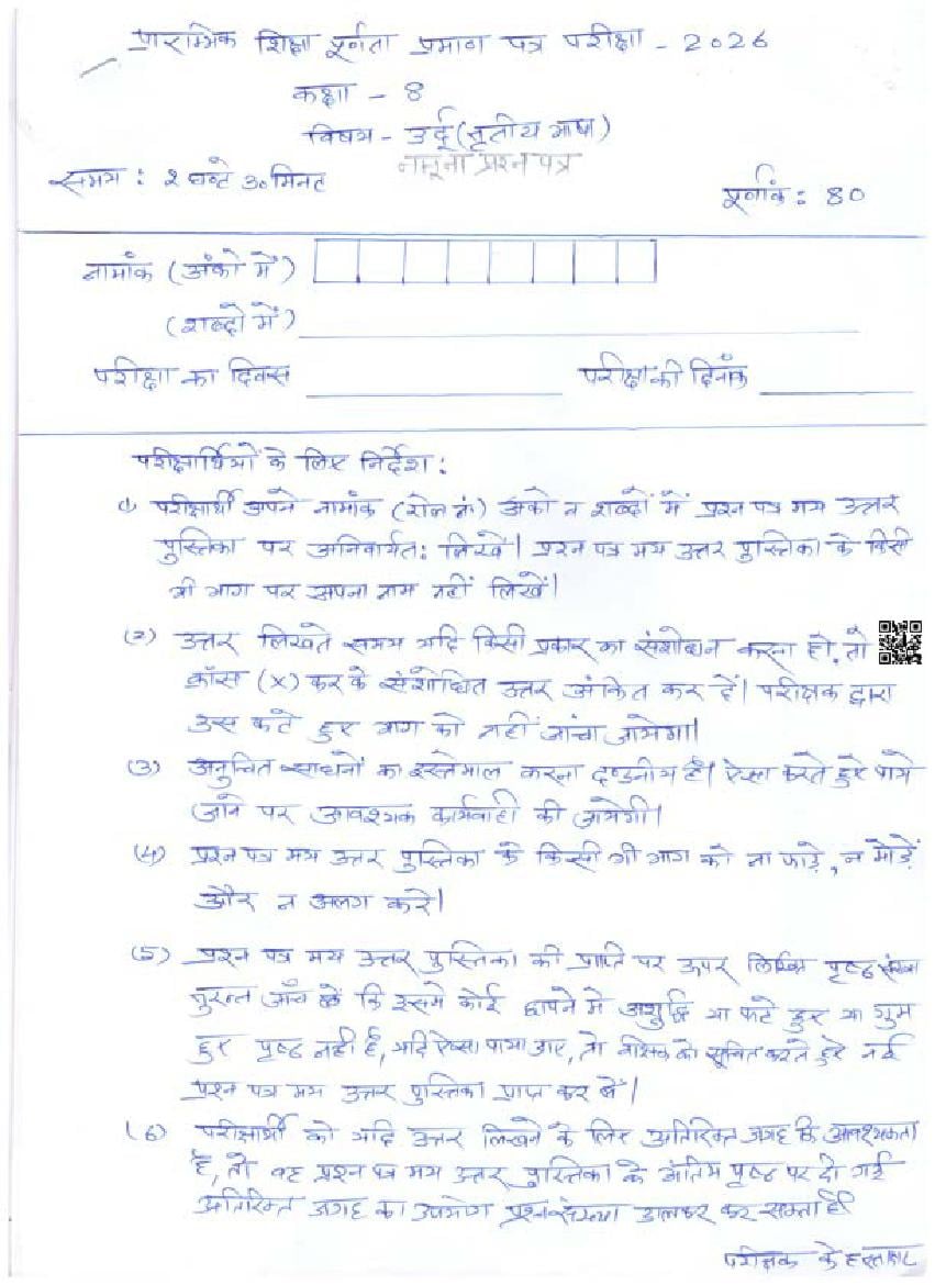 Rajasthan Board 8th Urdu Model Paper 2026 – An Overview