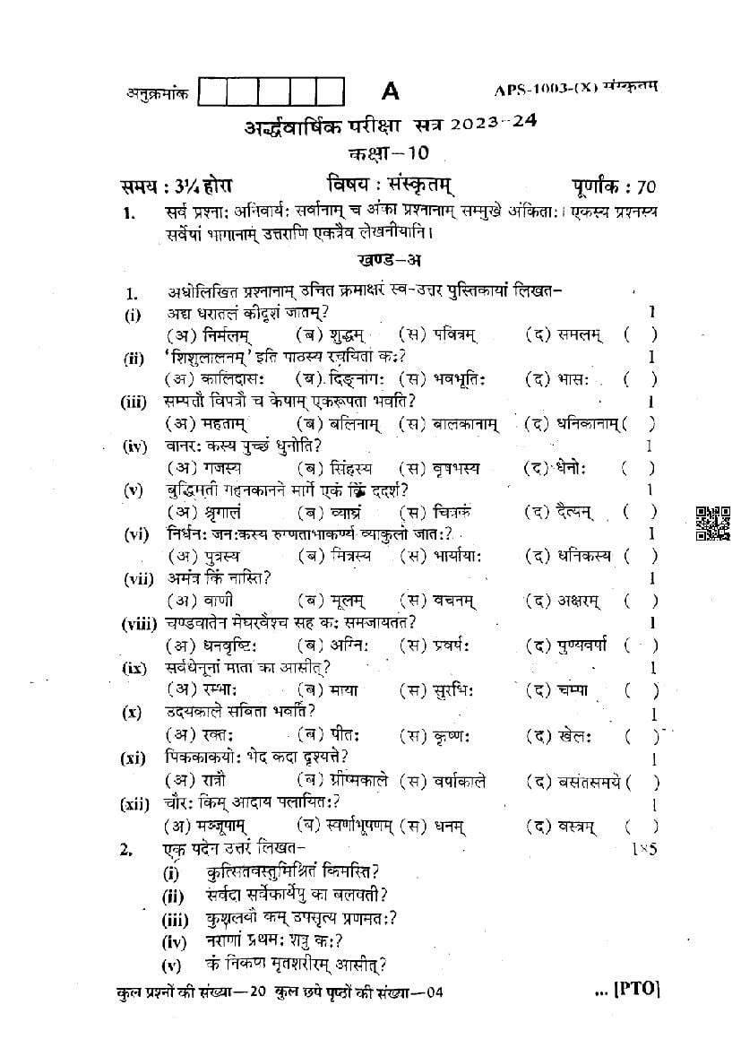 | Study Material Here | RBSE Class 10 Sanskrit Half Yearly Question Paper 2025 |