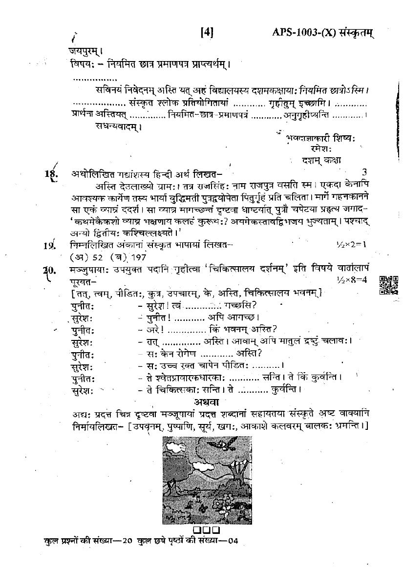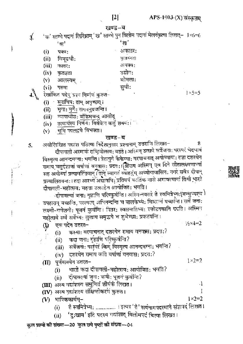 The important details of this 10th class half yearly exam Sanskrit question paper are as follows.