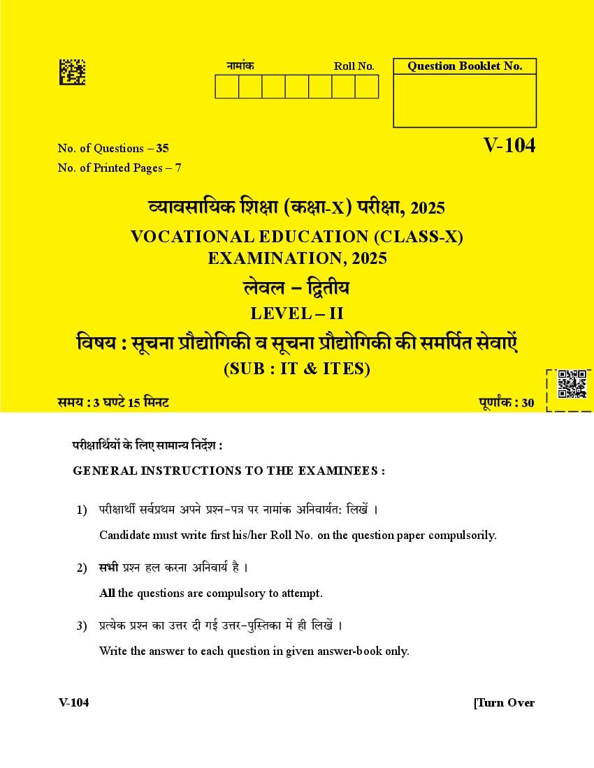 RBSE 10th IT ITES Question Paper 2025 PDF is given below.
