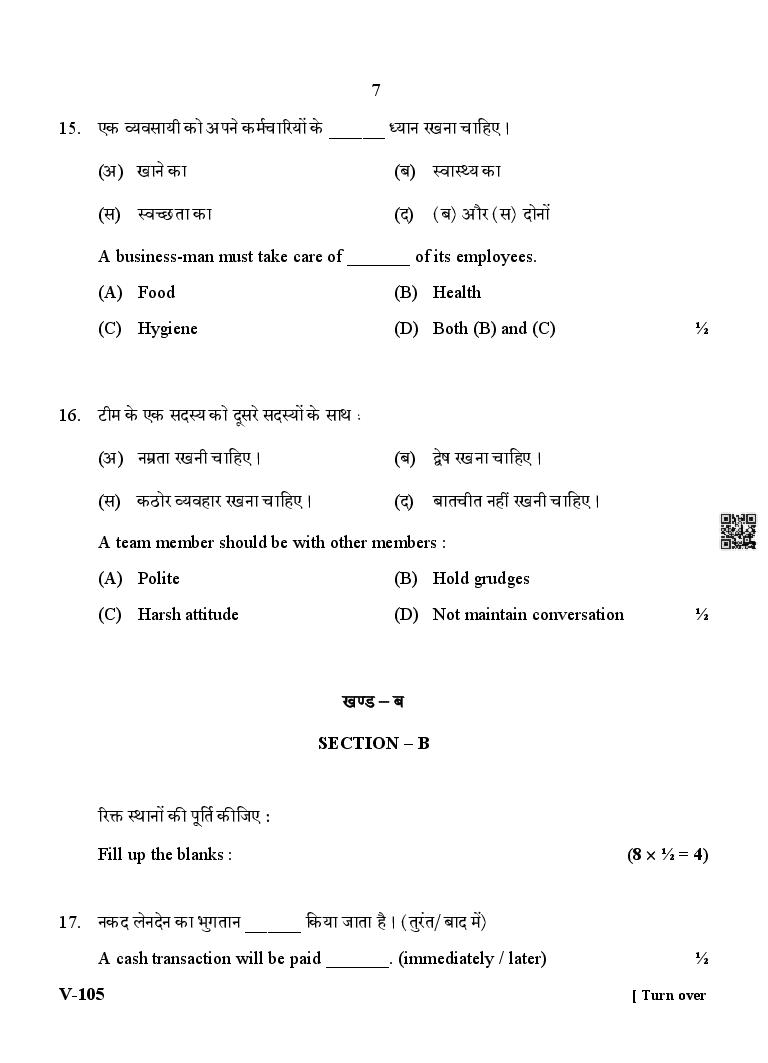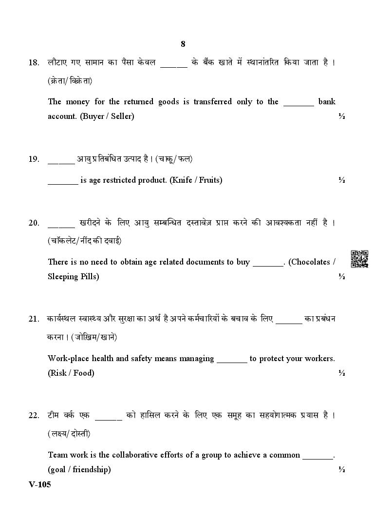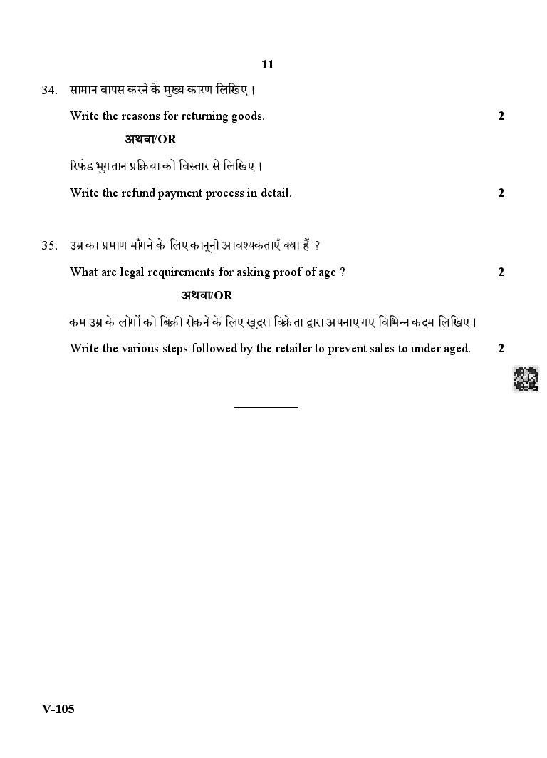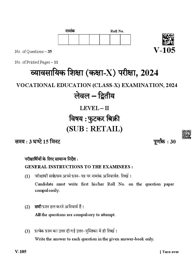 The Rajasthan Board previous year question paper for class 10 Retail is as follows.