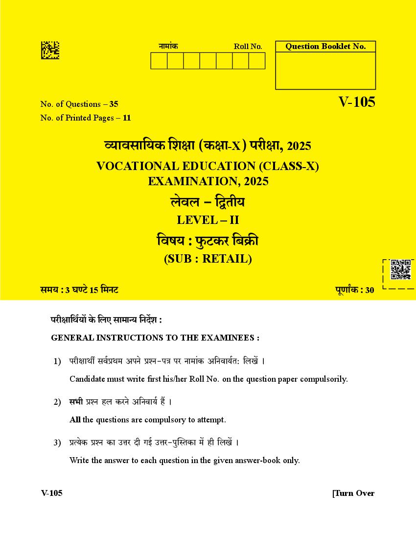 RBSE 10th Retail Question Paper 2025 PDF is given below.