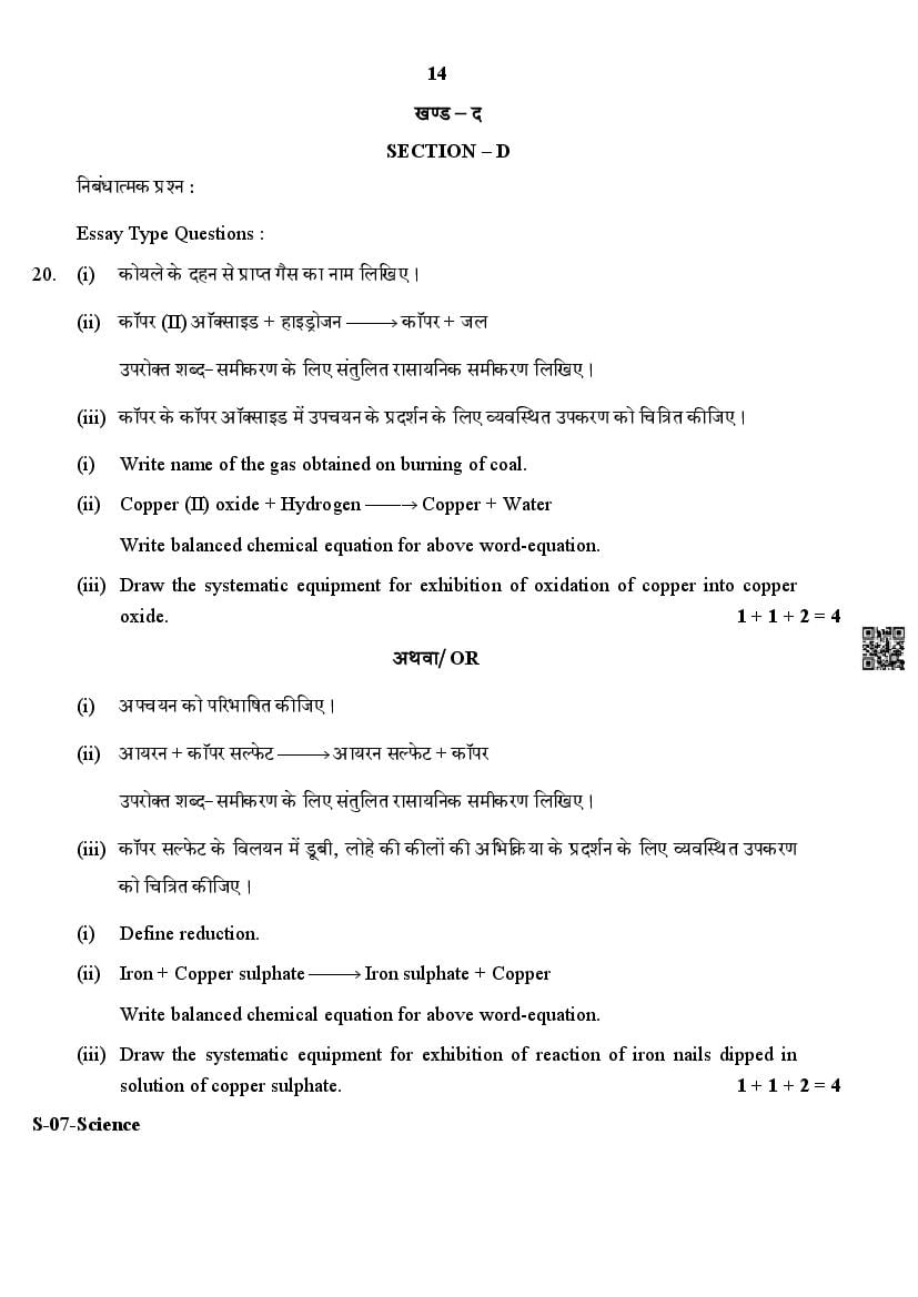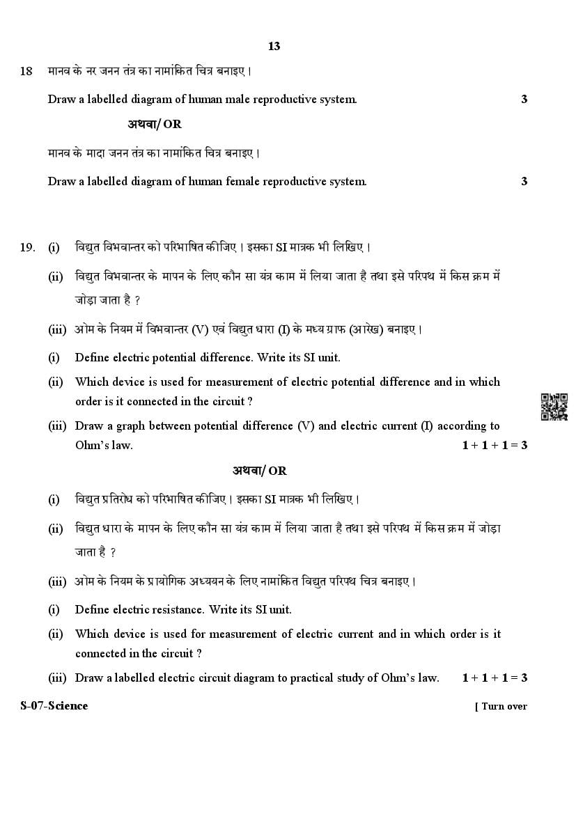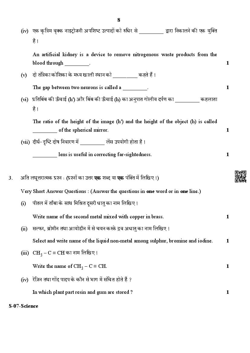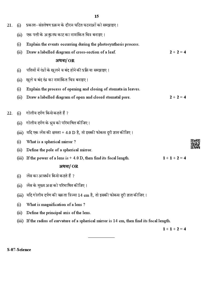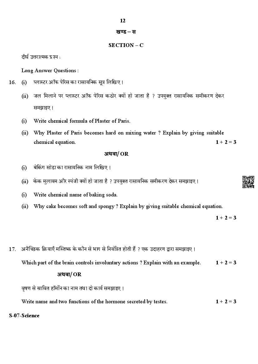 The Rajasthan Board previous year question paper for class 10 Science is as follows.