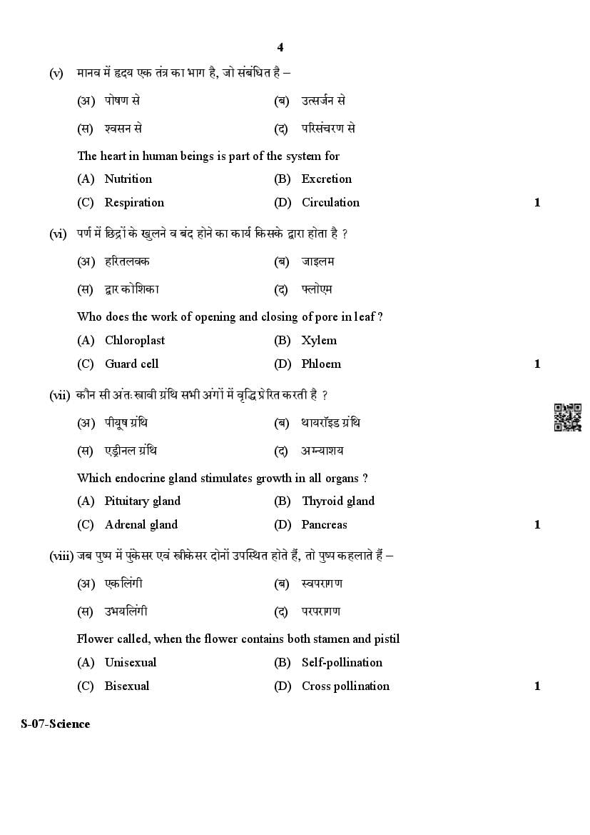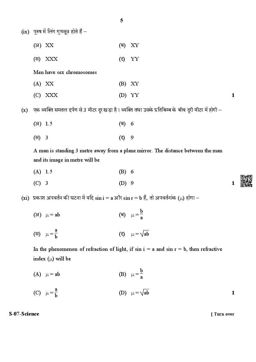 Rajasthan Board Class 10 Question Paper 2024 Science View Download
