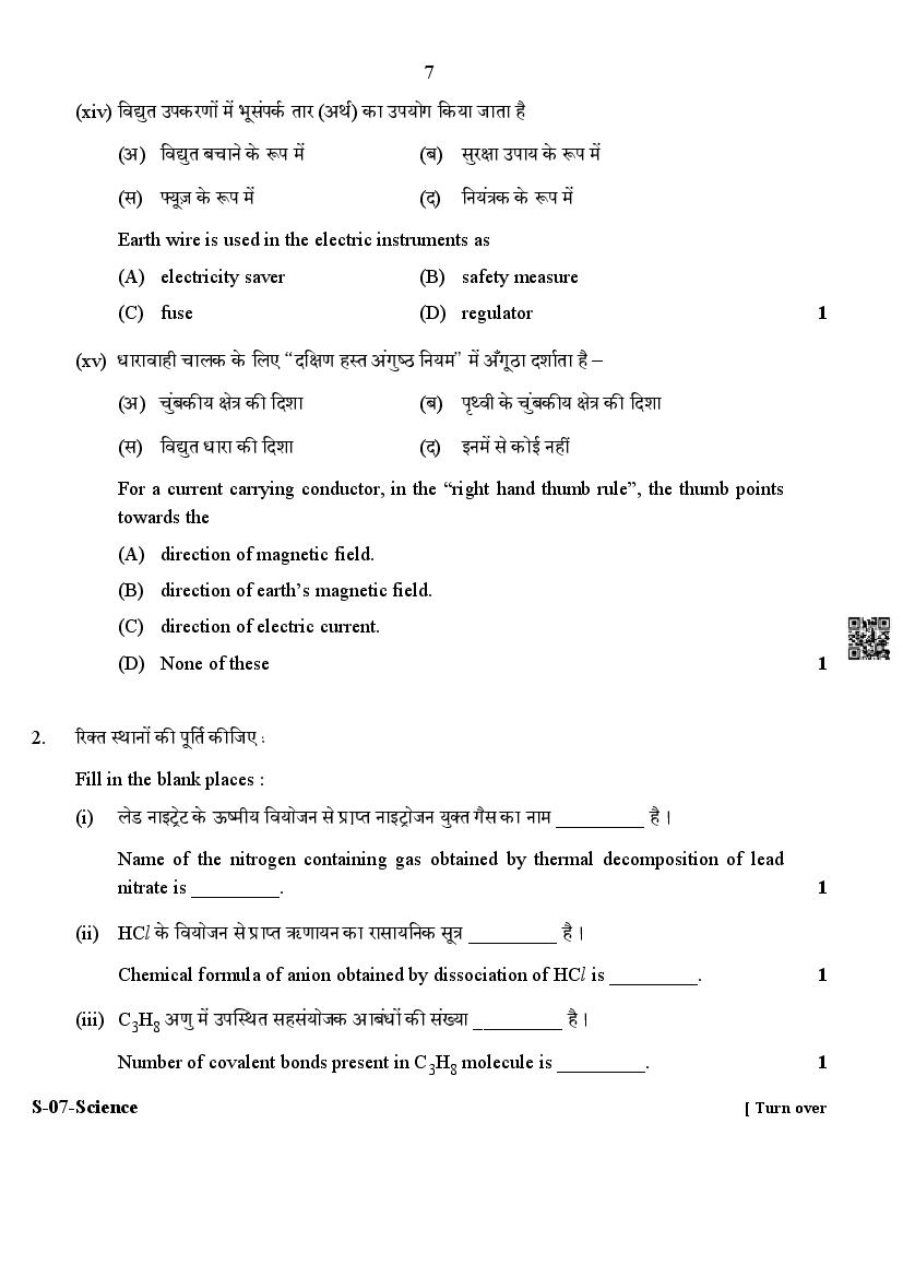 RBSE 10th Science Question Paper 2024 PDF is given below.