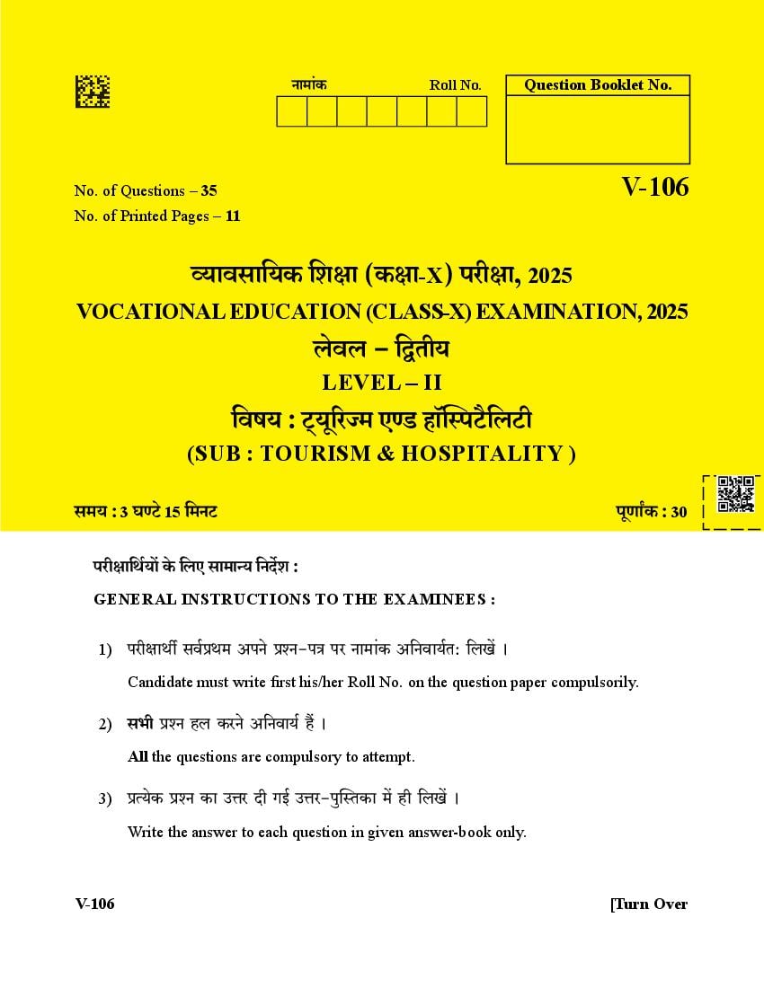 Rajasthan Board Class 10 Question Paper 2025 Tourism & Hospitality View Download