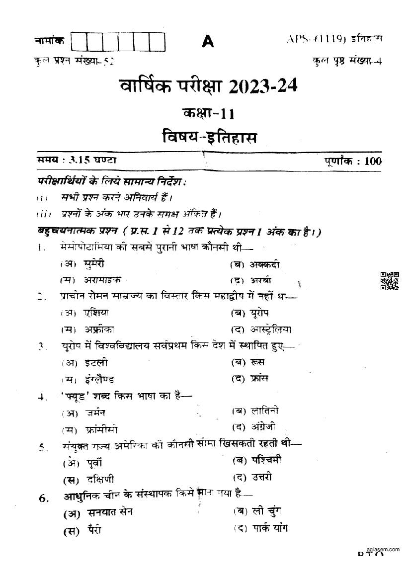 The Rajasthan Board previous year question paper for class 11 History is as follows.