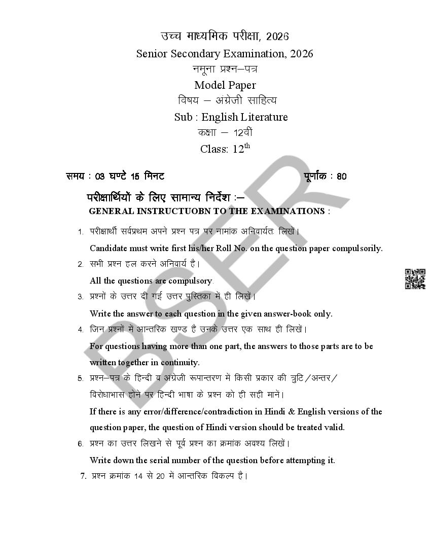 If you have any queries on RBSE Class 12 English Literature Model Paper 2026, then please ask in comments below.