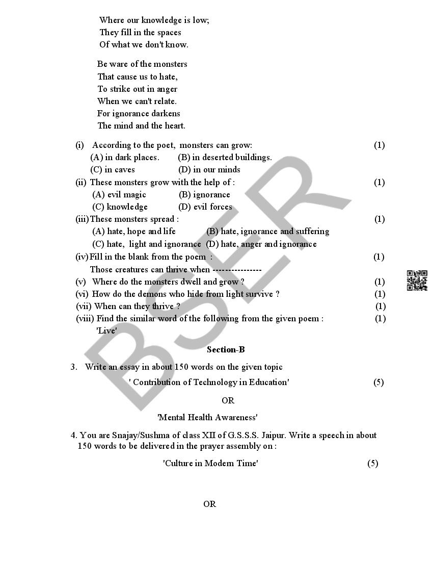 The Rajasthan Board model paper for class 12 English Literature is as follows.