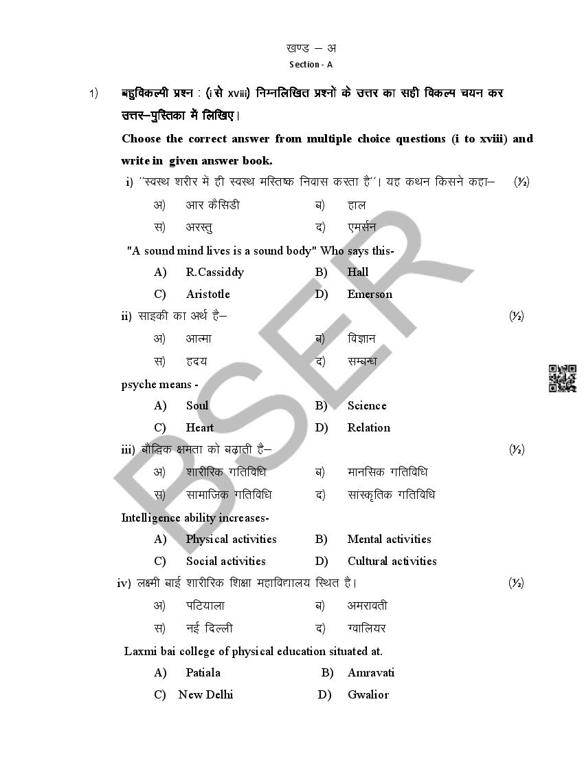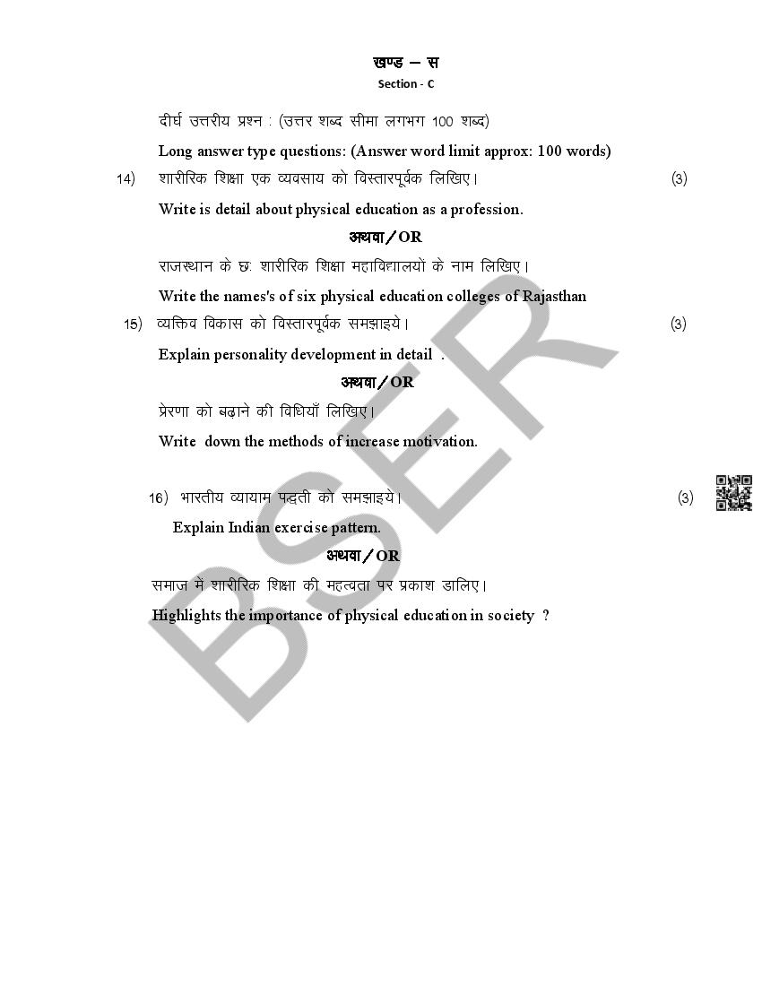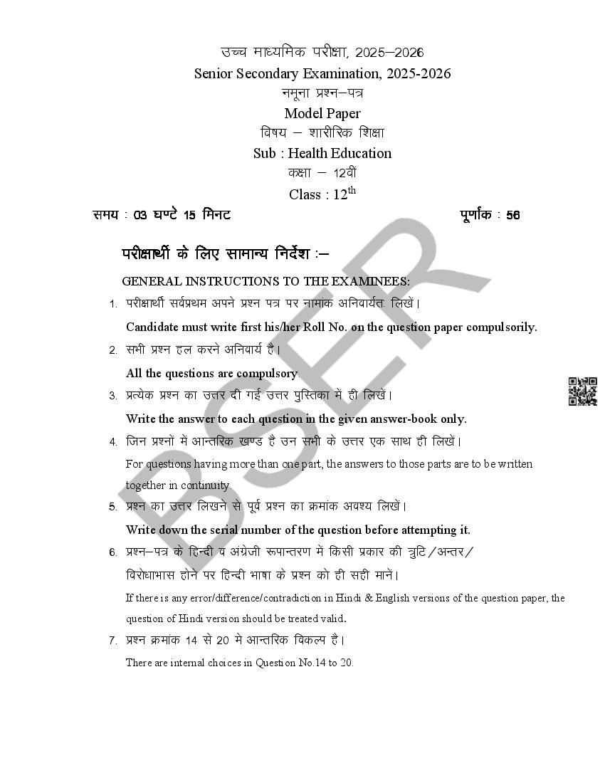 The Rajasthan Board model paper for class 12 Health Education is as follows.