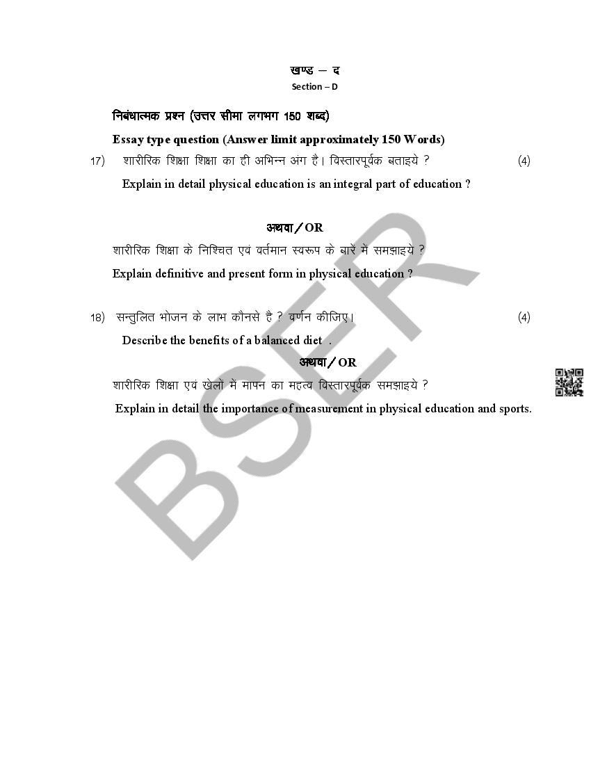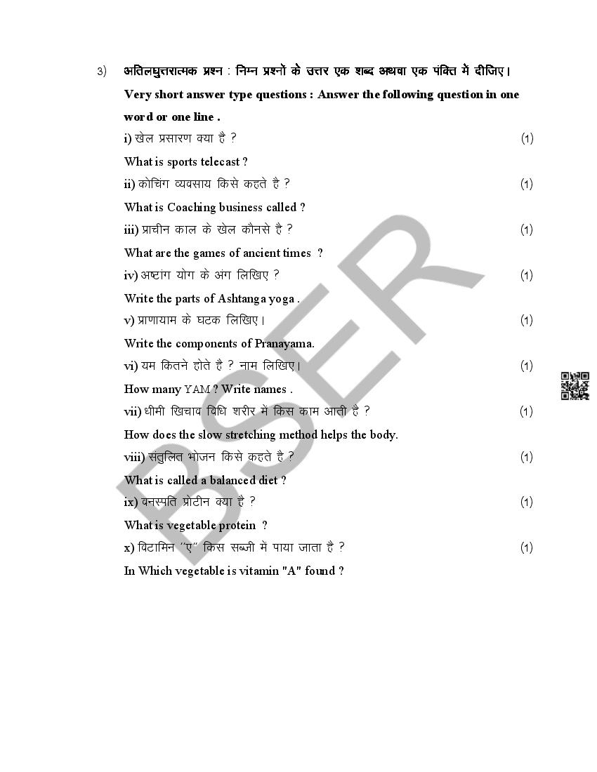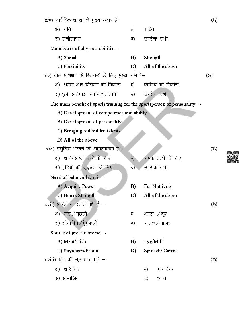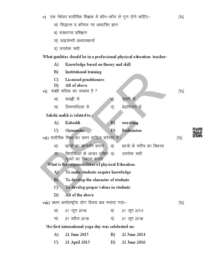 The Rajasthan Board model paper for class 12 Health Education is as follows.