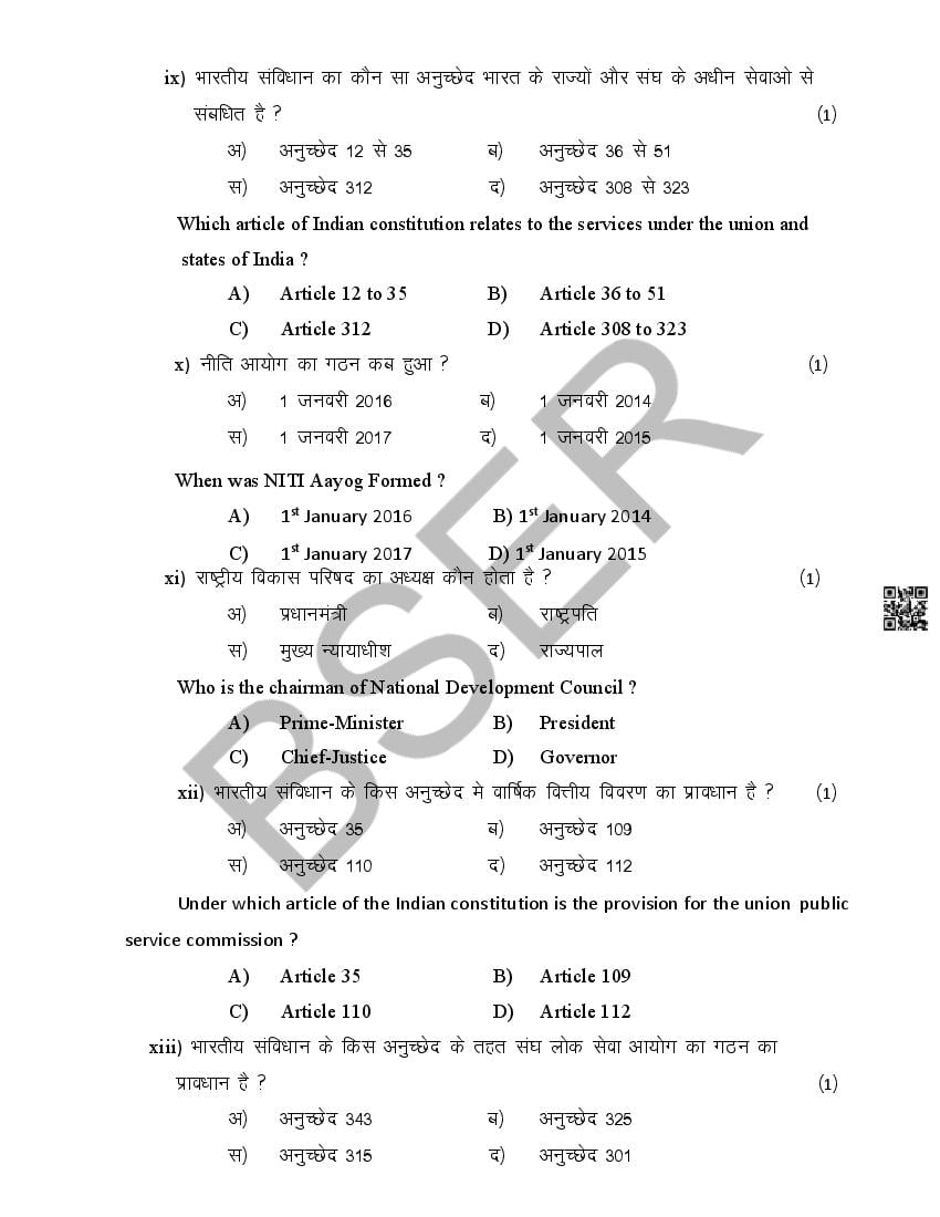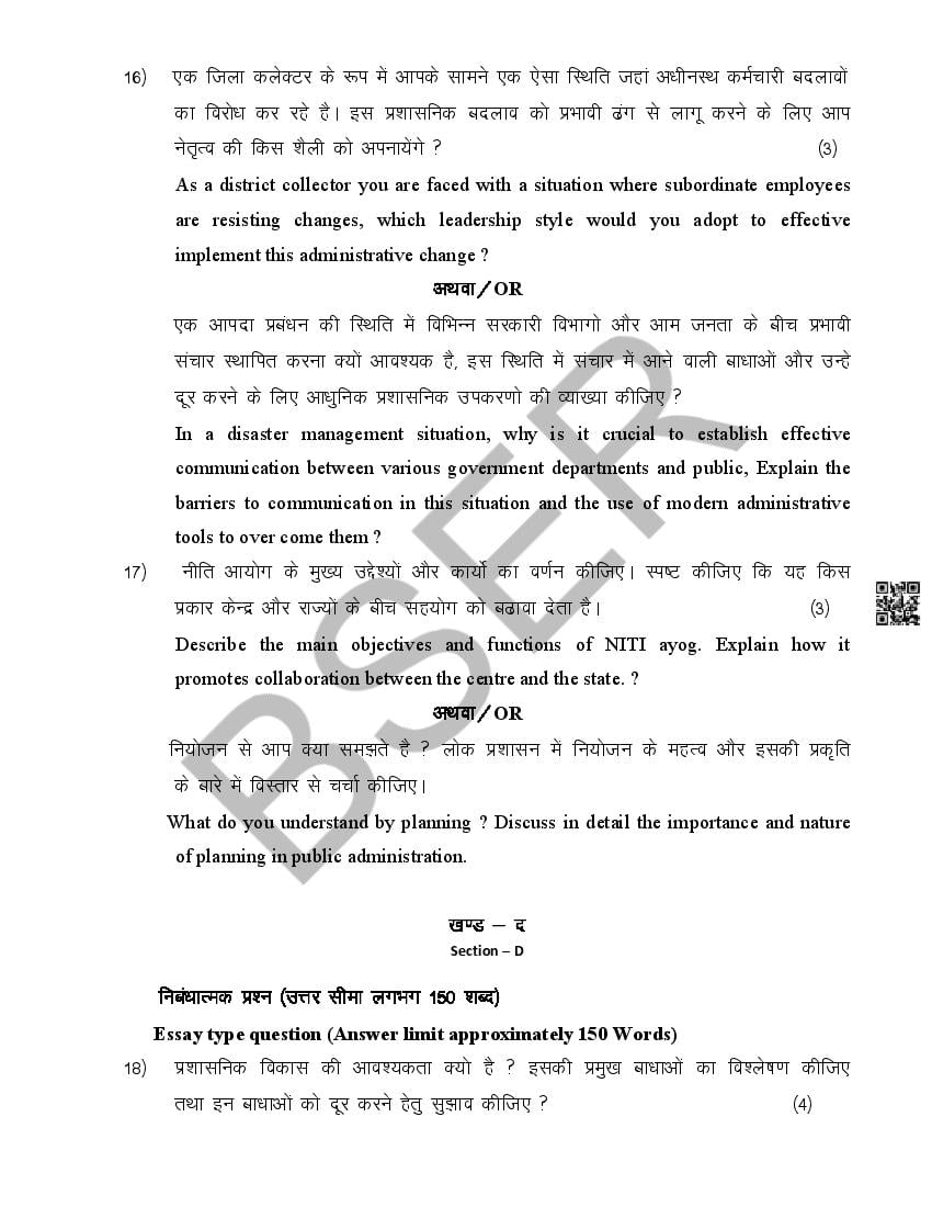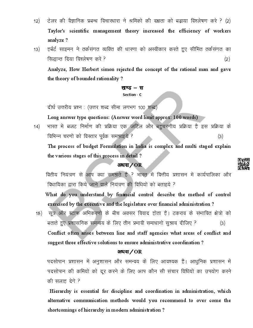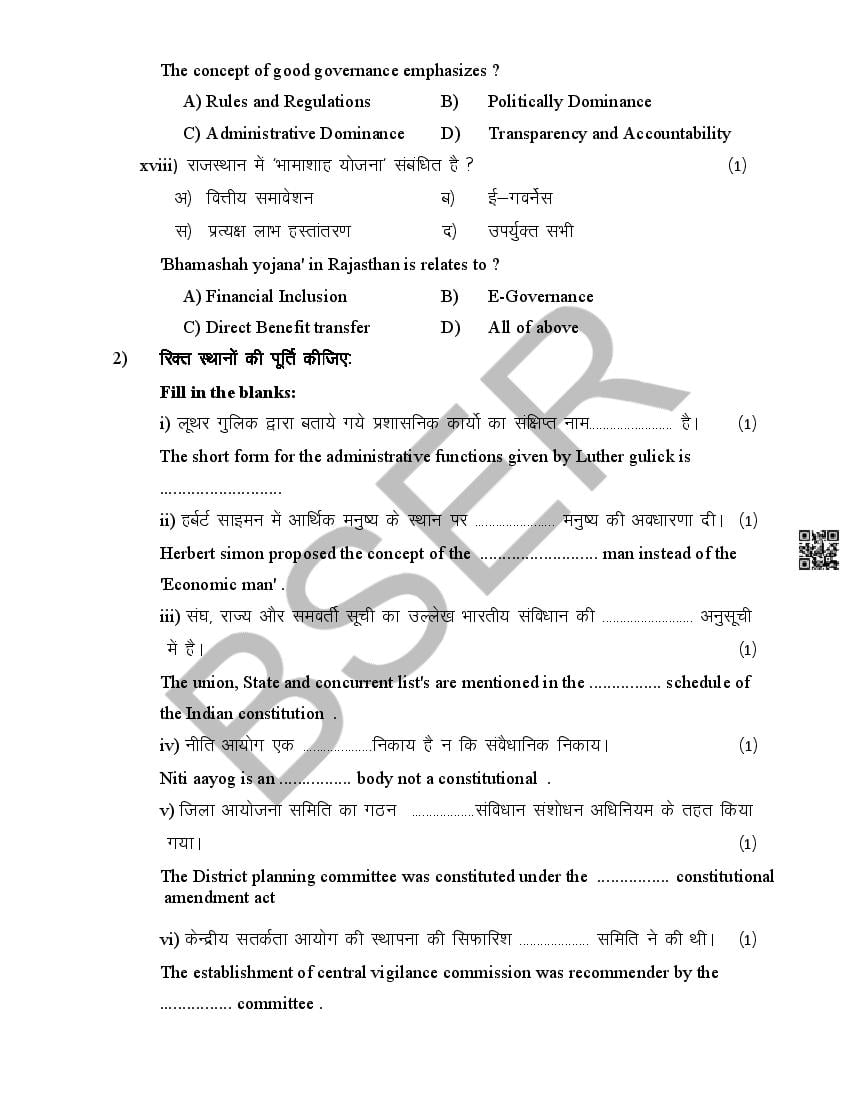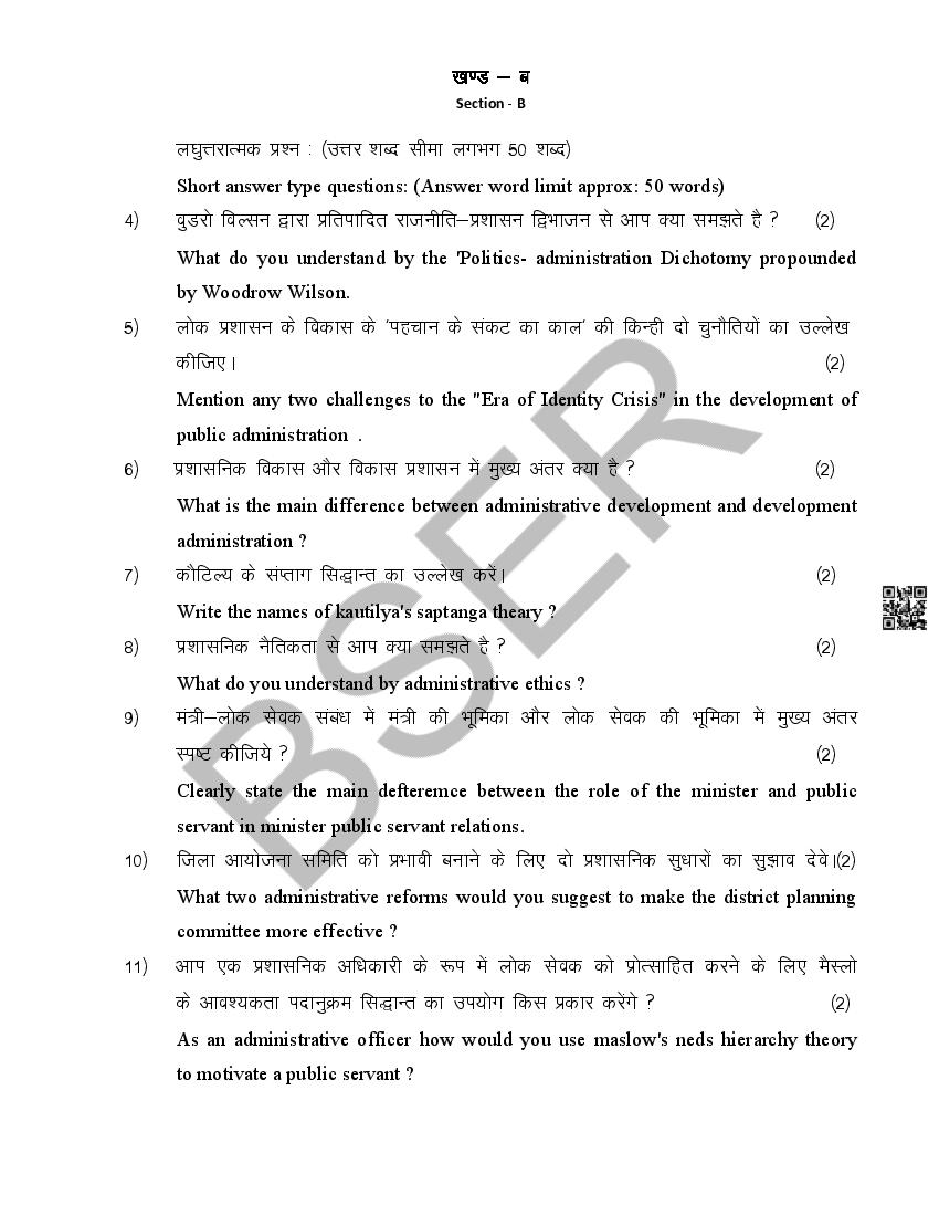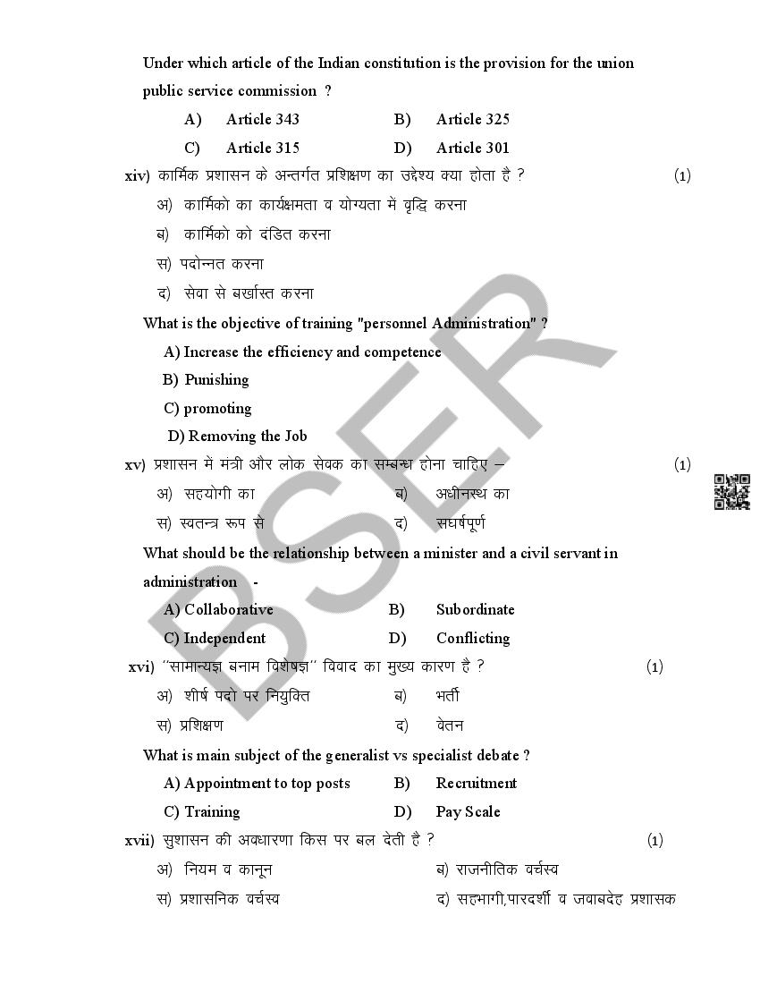 The Rajasthan Board model paper for class 12 Public Administration is as follows.