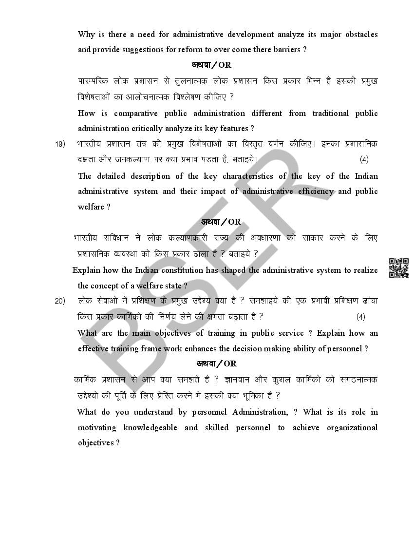 RBSE Class 12 Public Administration Model Paper 20245 PDF