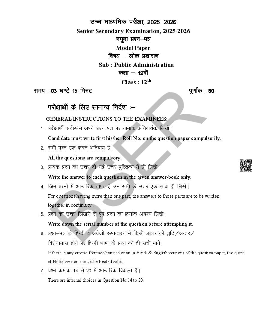 If you have any queries on RBSE Class 12 Public Administration Model Paper 2026, then please ask in comments below.