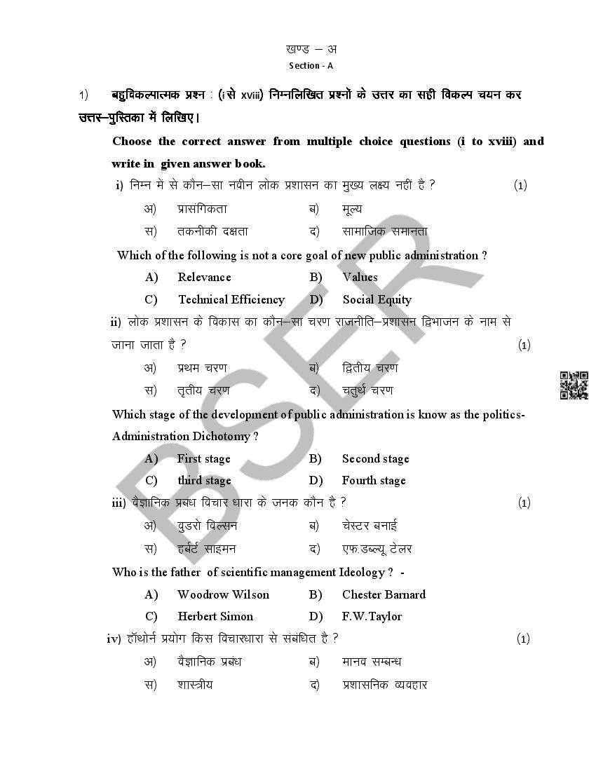 Rajasthan Board 12th Model Paper 2026 Public Administration View Download