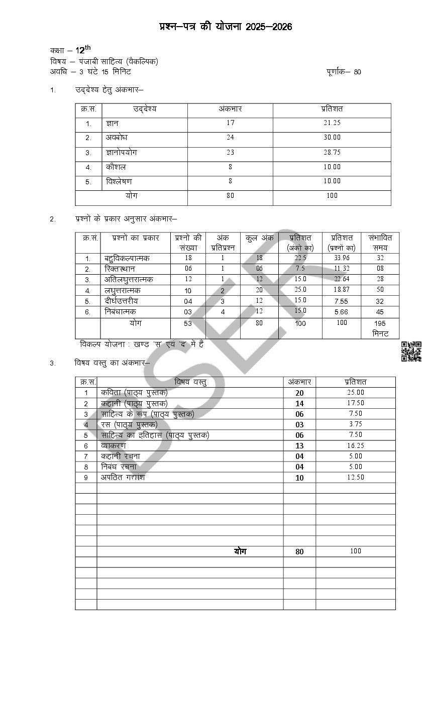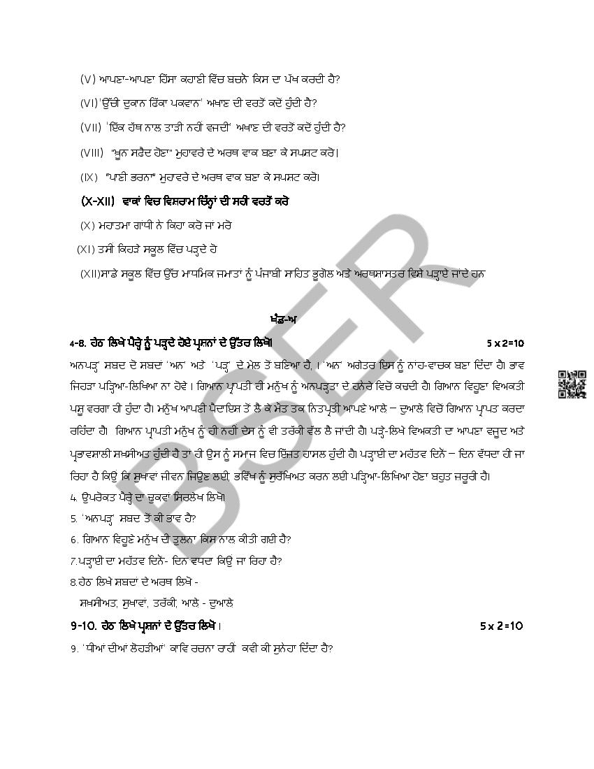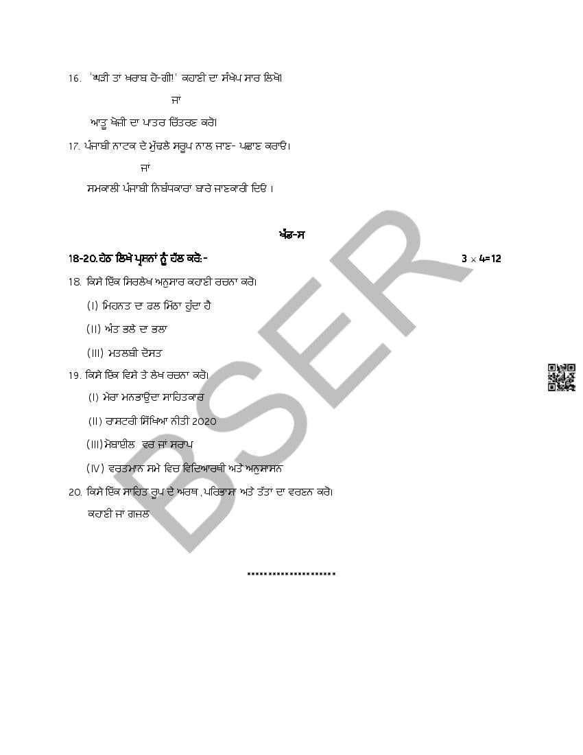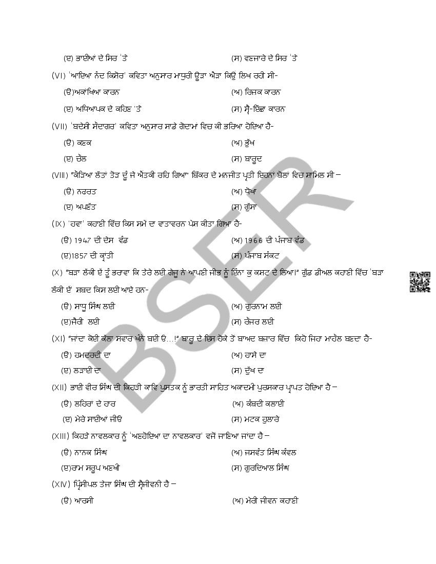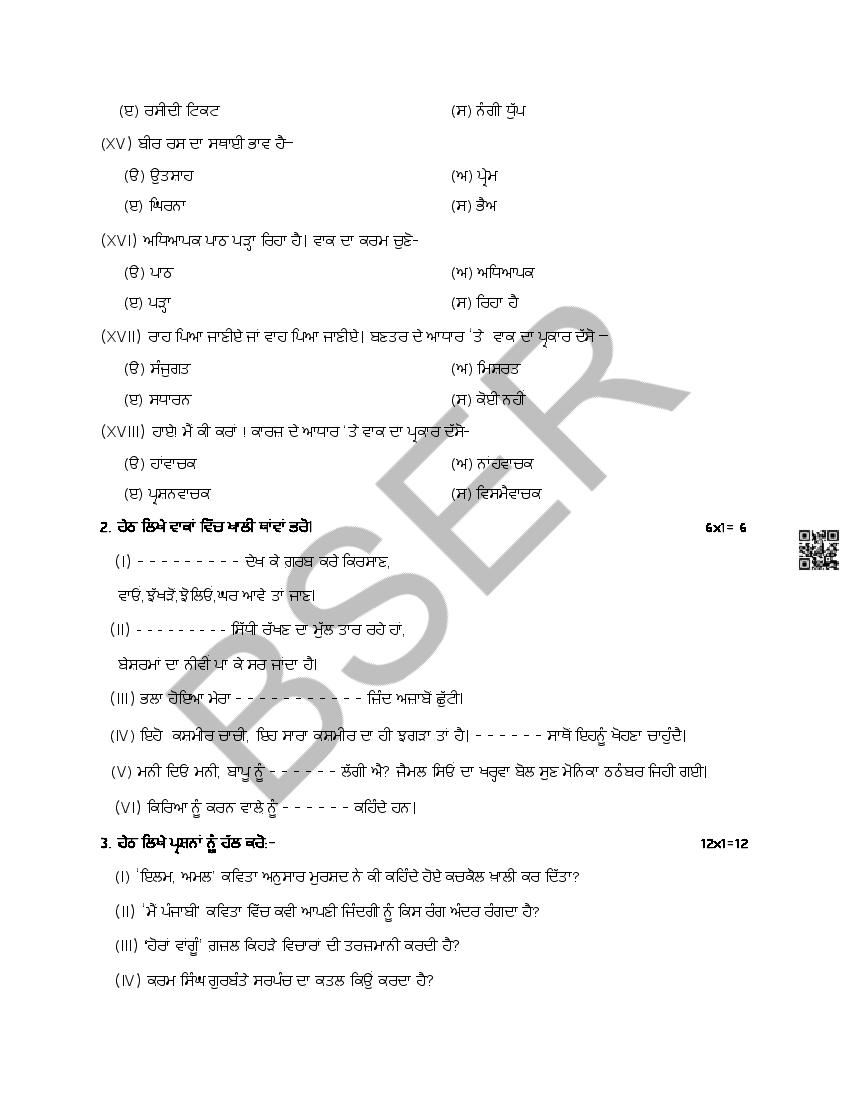 The Rajasthan Board model paper for class 12 Punjabi is as follows.