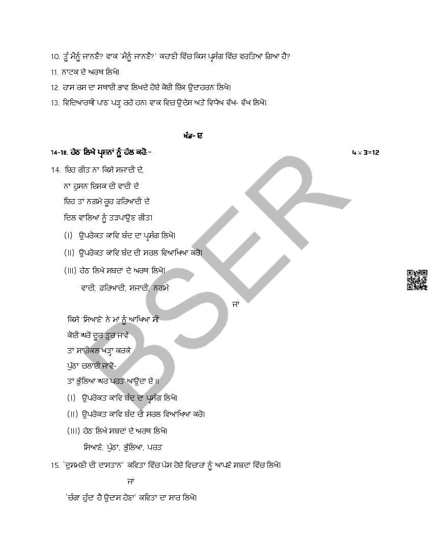 While you can solve the Punjabi sample paper with the Rajasthan Board Punjabi books and RBSE solutions for class 12. Nevertheless you may want RBSE Class 12 Punjabi Question Paper with Answers. You can therefore download Rajasthan Board Class 12 Previous Year Question Papers as PDF to know exactly which questions were asked. The RBSE Previous Year Question papers Class 12 Punjabi also help you score more in exam.