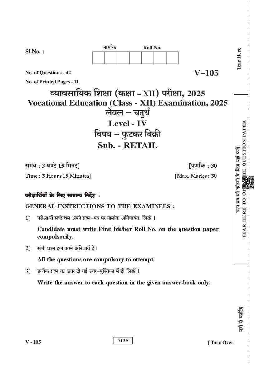 RBSE 12th Retail Question Paper 2025 PDF is given below.