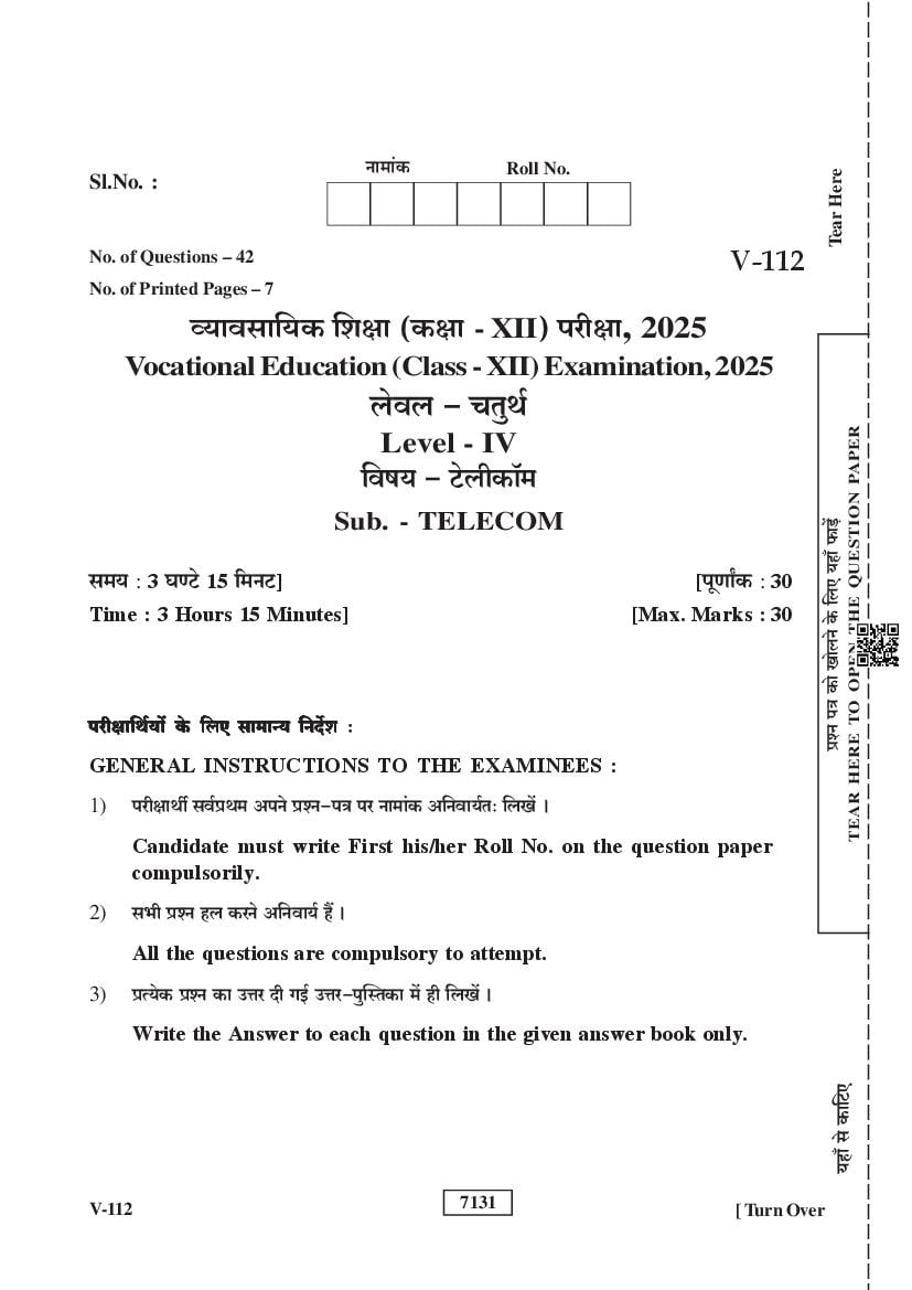Rajasthan Board Class 12 Question Paper 2025 Telecom View Download