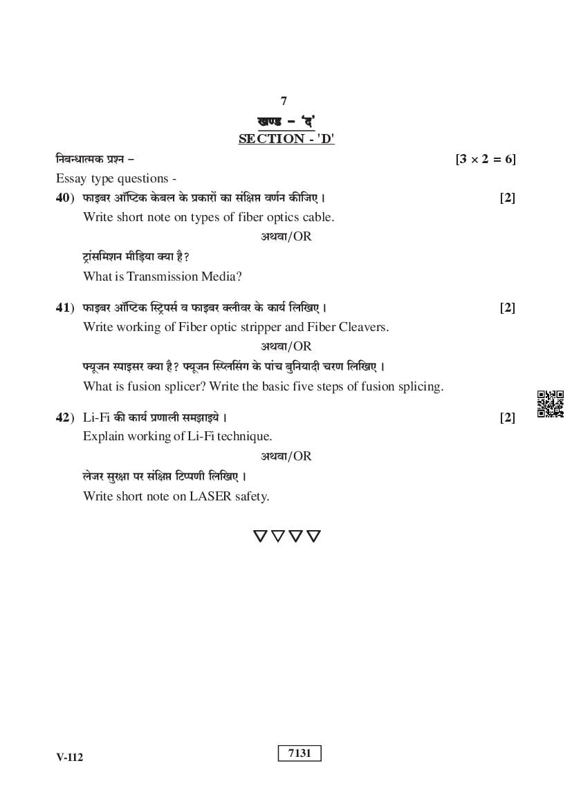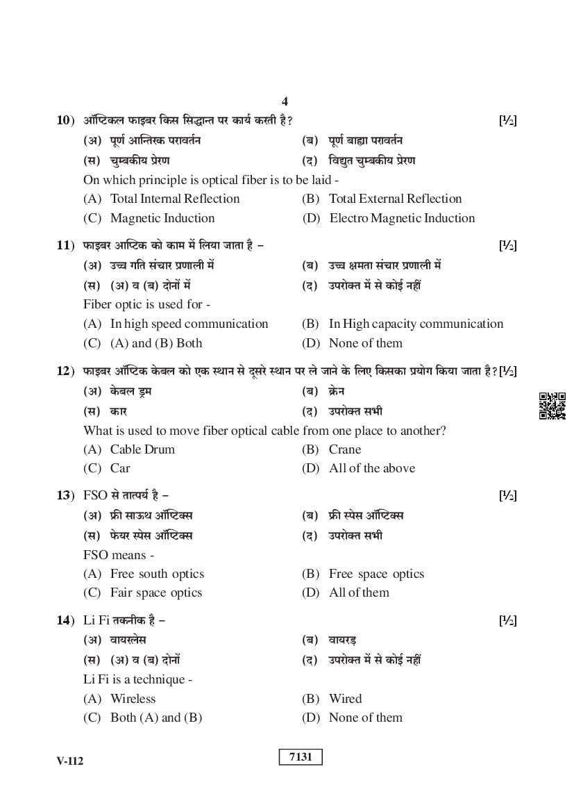 For the sake of the candidates download links of the Rajasthan Board 12 Telecom Previous Year Question Paper are given below.