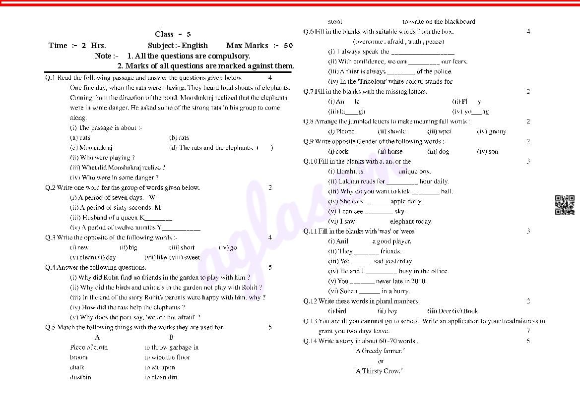 The important details of this 5th class half yearly exam English question paper are as follows.