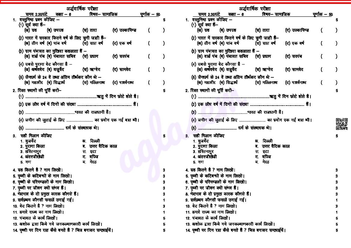 | Study Material Here | RBSE Class 6 Social Science Half Yearly Question Paper 2025 |