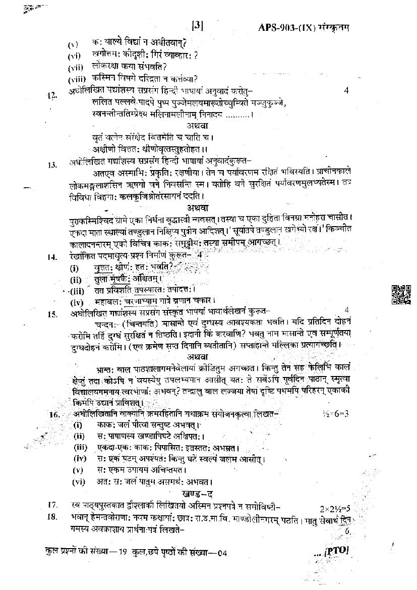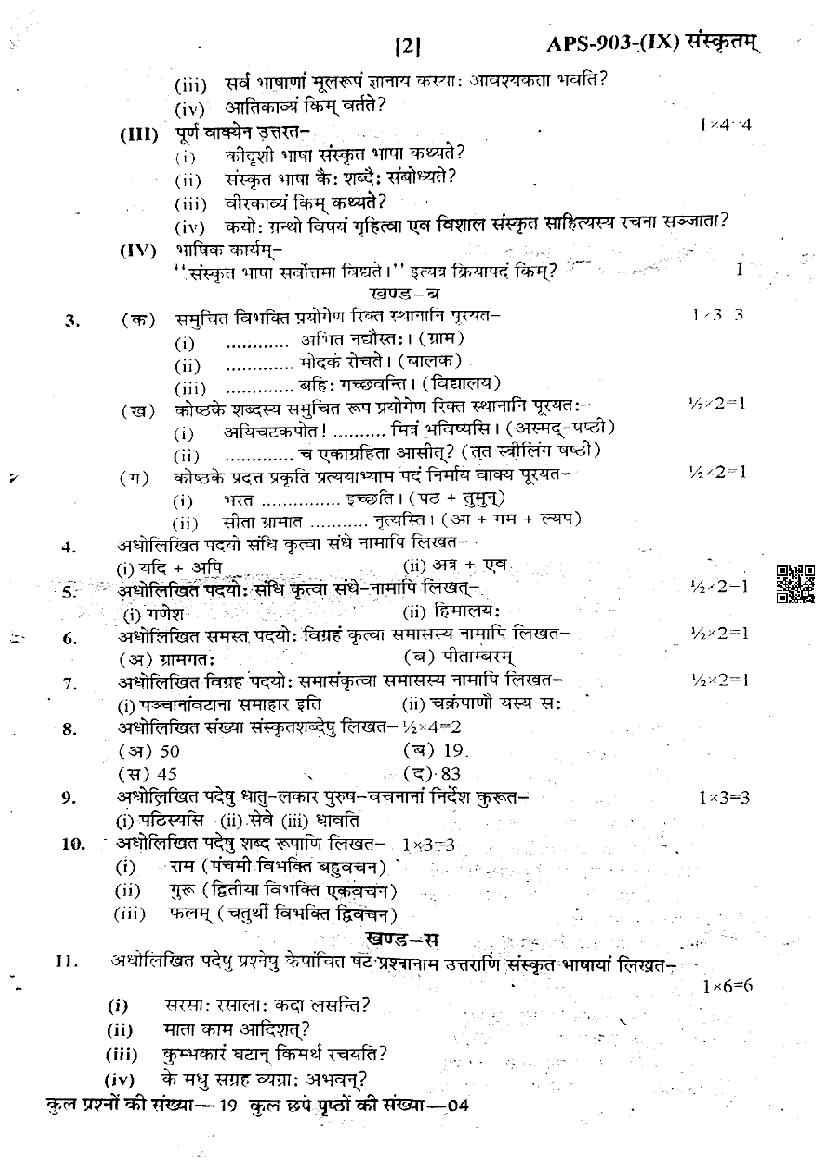 The important details of this 9th class half yearly exam Sanskrit question paper are as follows.