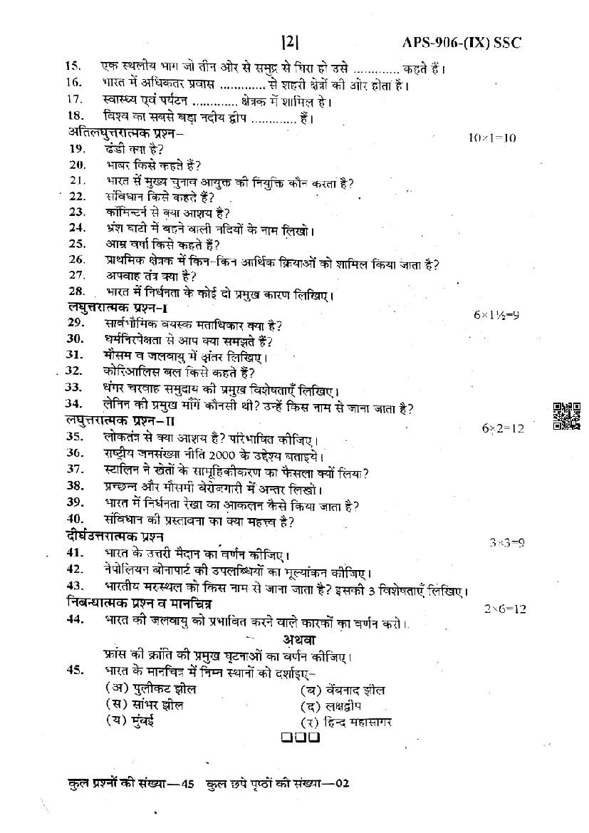 | More Papers for This Exam | Rajasthan Board 9th Half Yearly Paper |