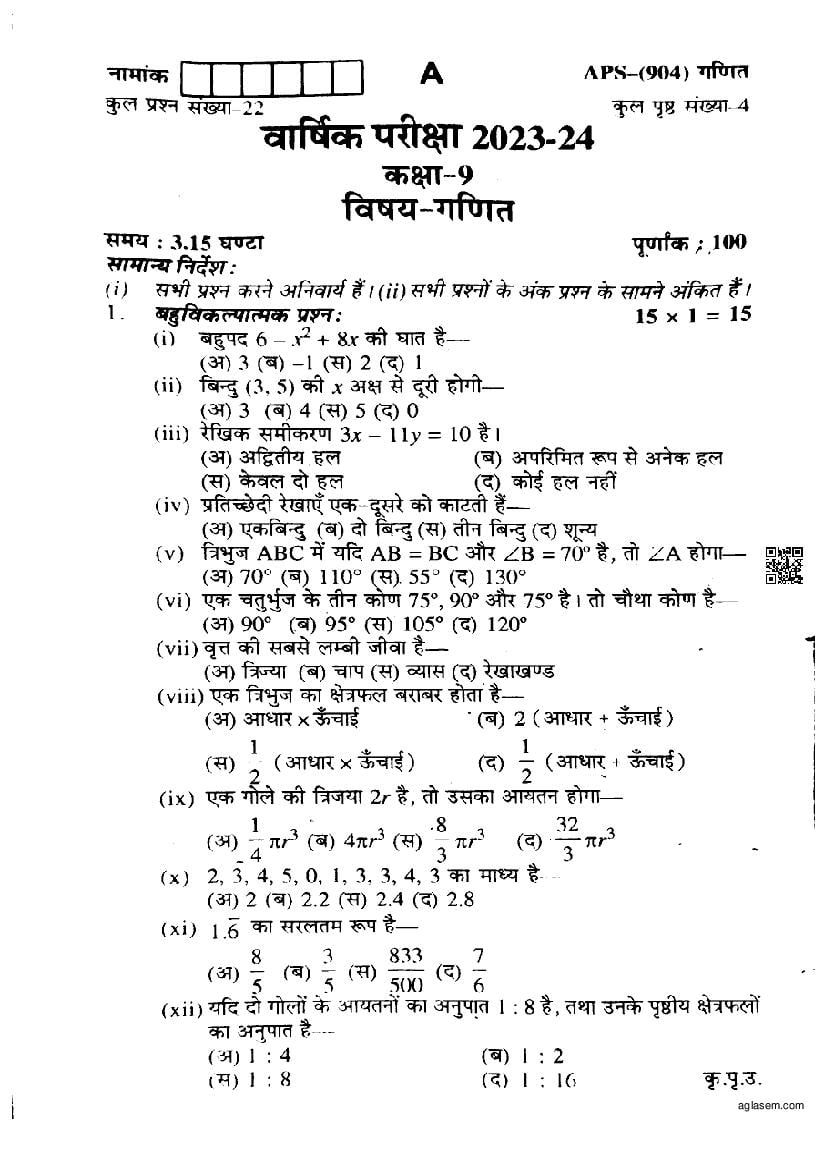 Qs. Can I get Rajasthan Board Class 9 Maths 2023 Question Paper?