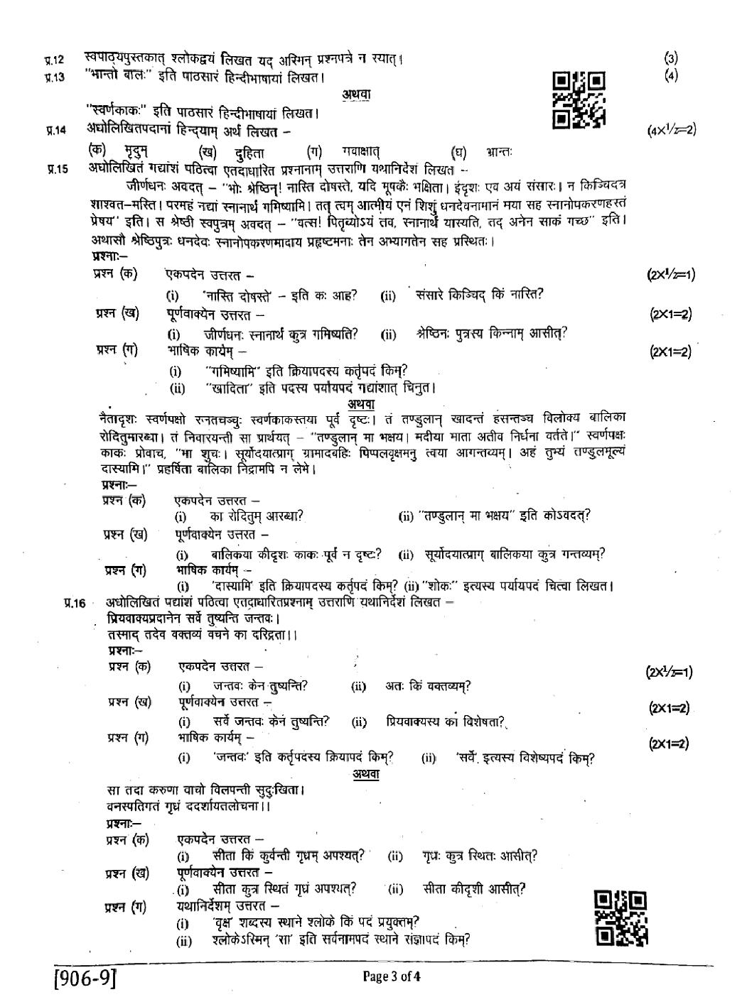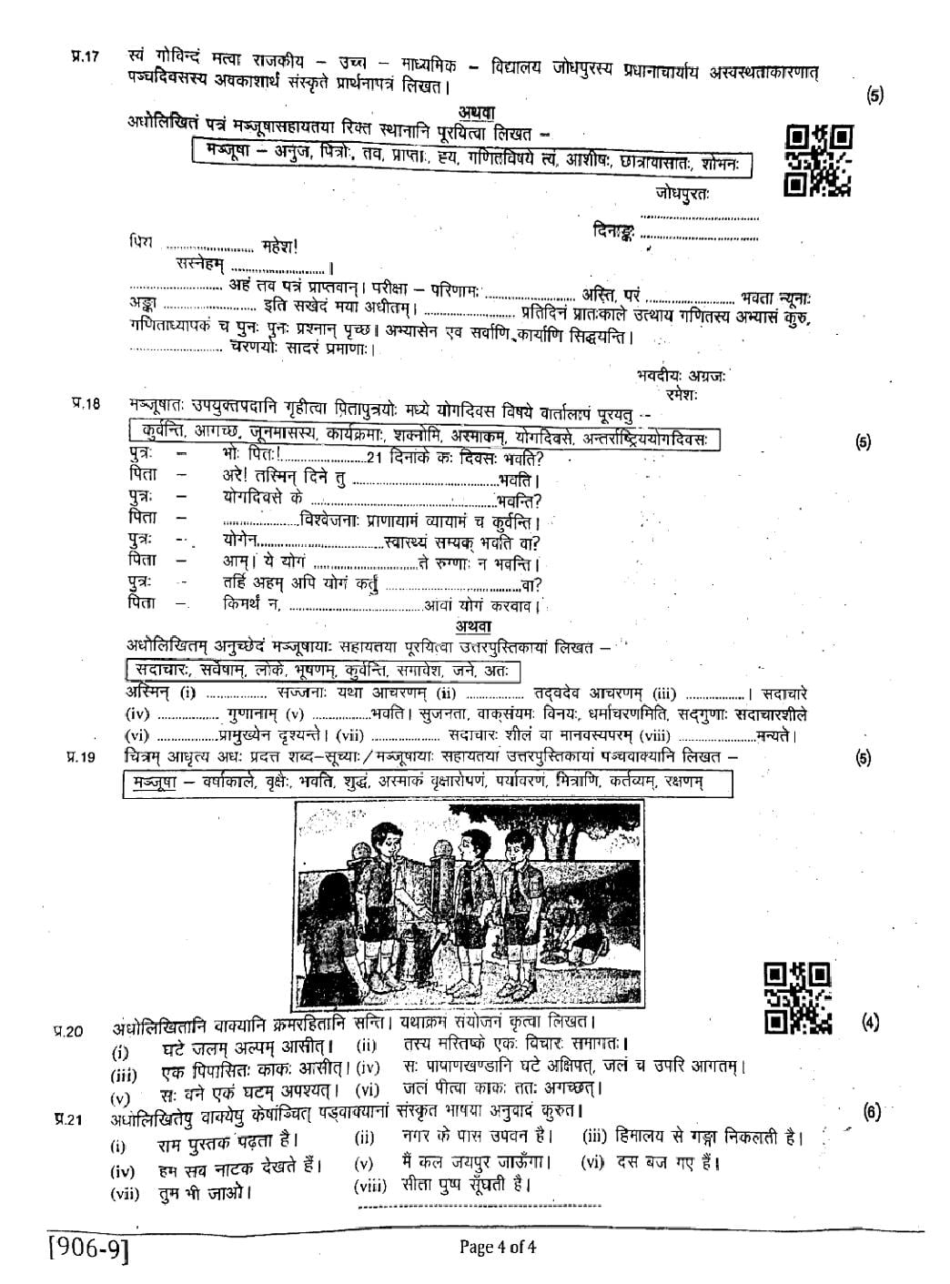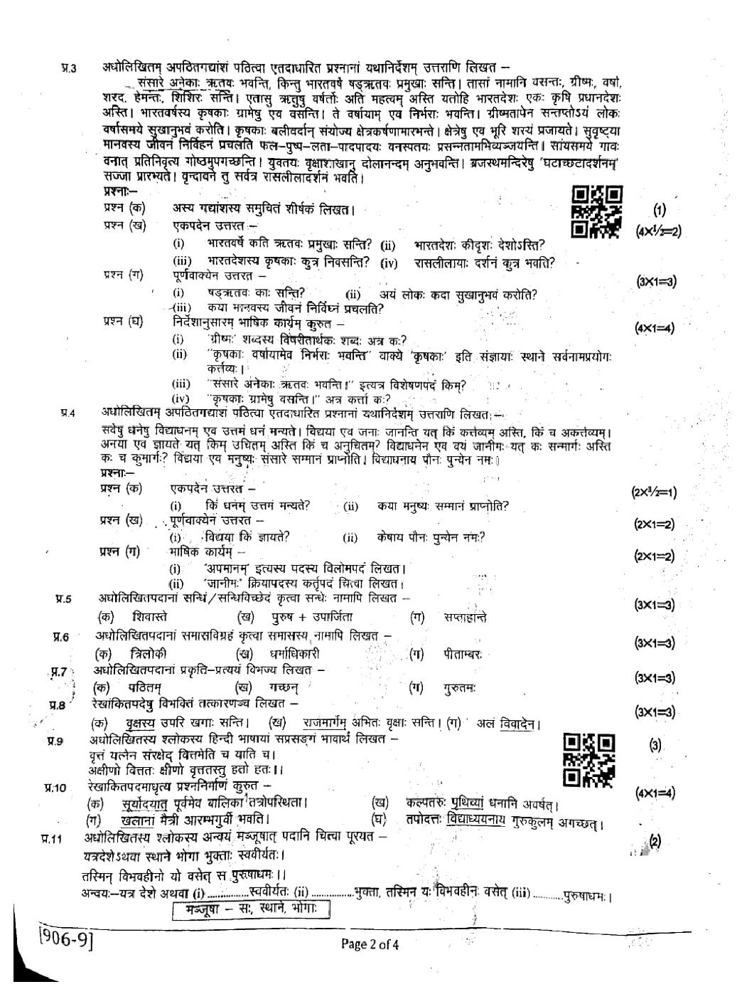 The Rajasthan Board previous year question paper for class 9 Sanskrit is as follows.
