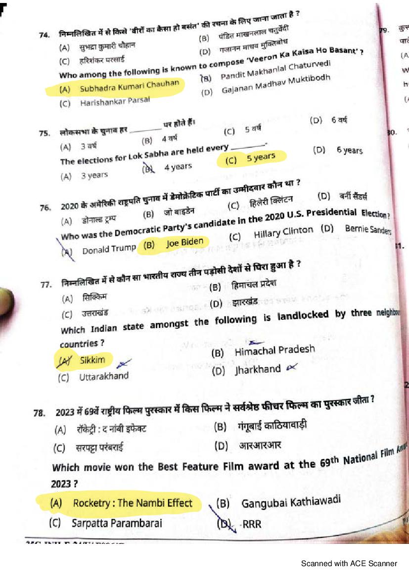 | Official Body for exam and Rashtriya Military School 2024 Question Paper | RMS |