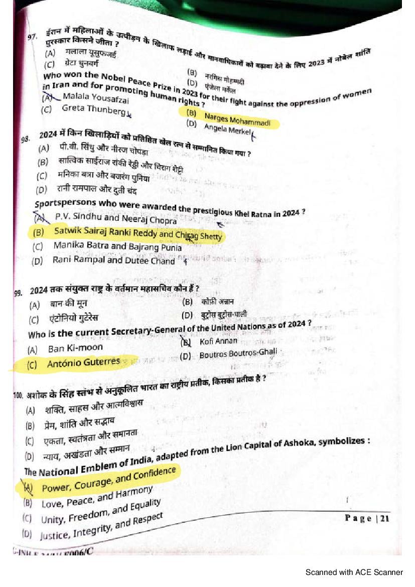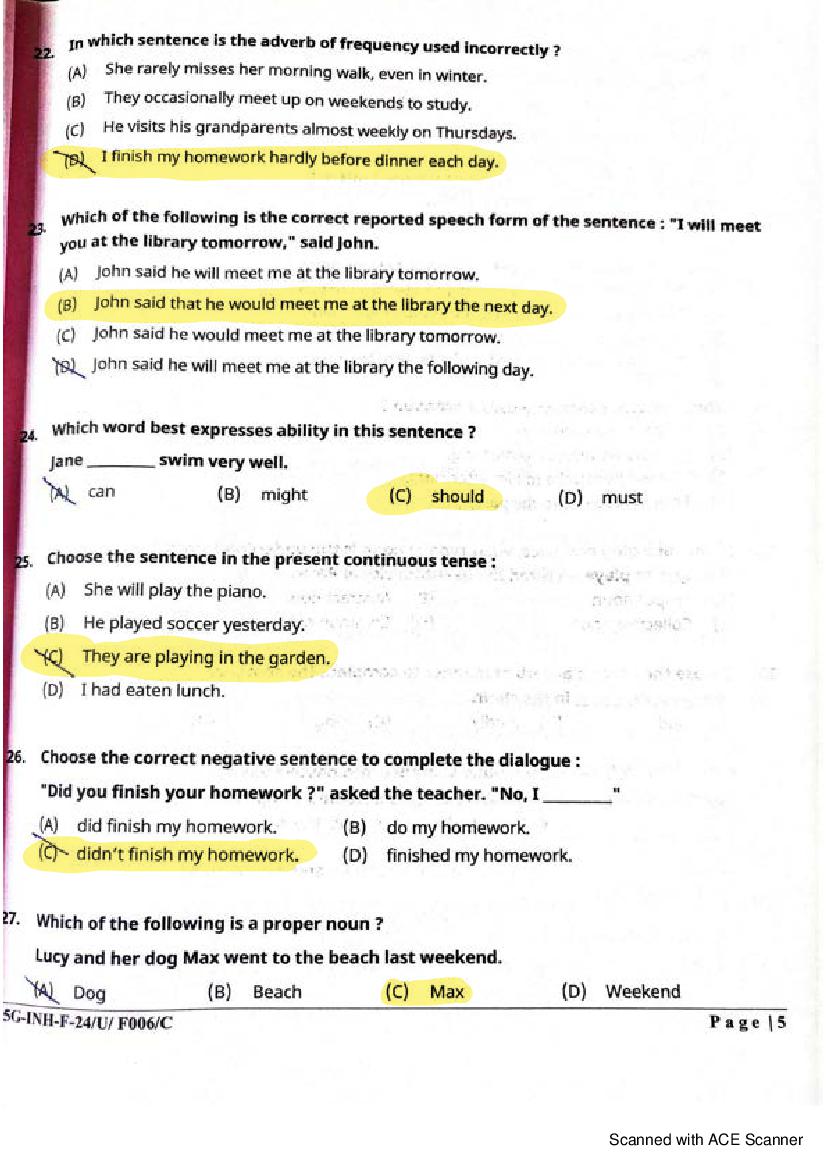 The key highlights of this Rashtriya Military Schools Common Entrance Test (Rashtriya Military School) 2024 question papers are as follows.