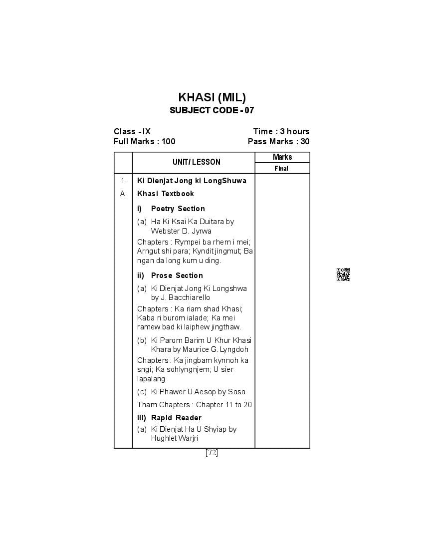 | Resource Here | SEBA HSLC Syllabus for Khasi |