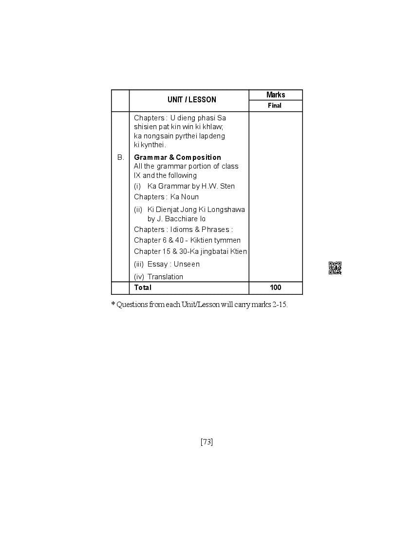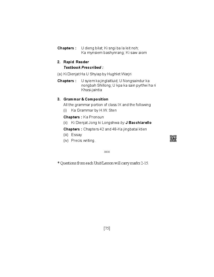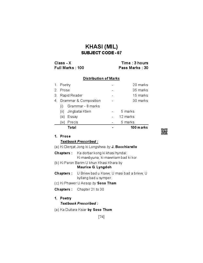 The SEBA syllabus for HSLC (Class 10) Khasi is as follows.