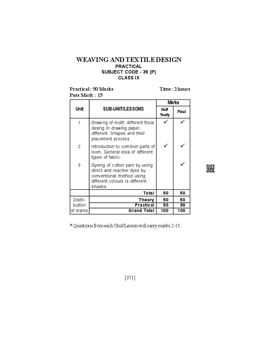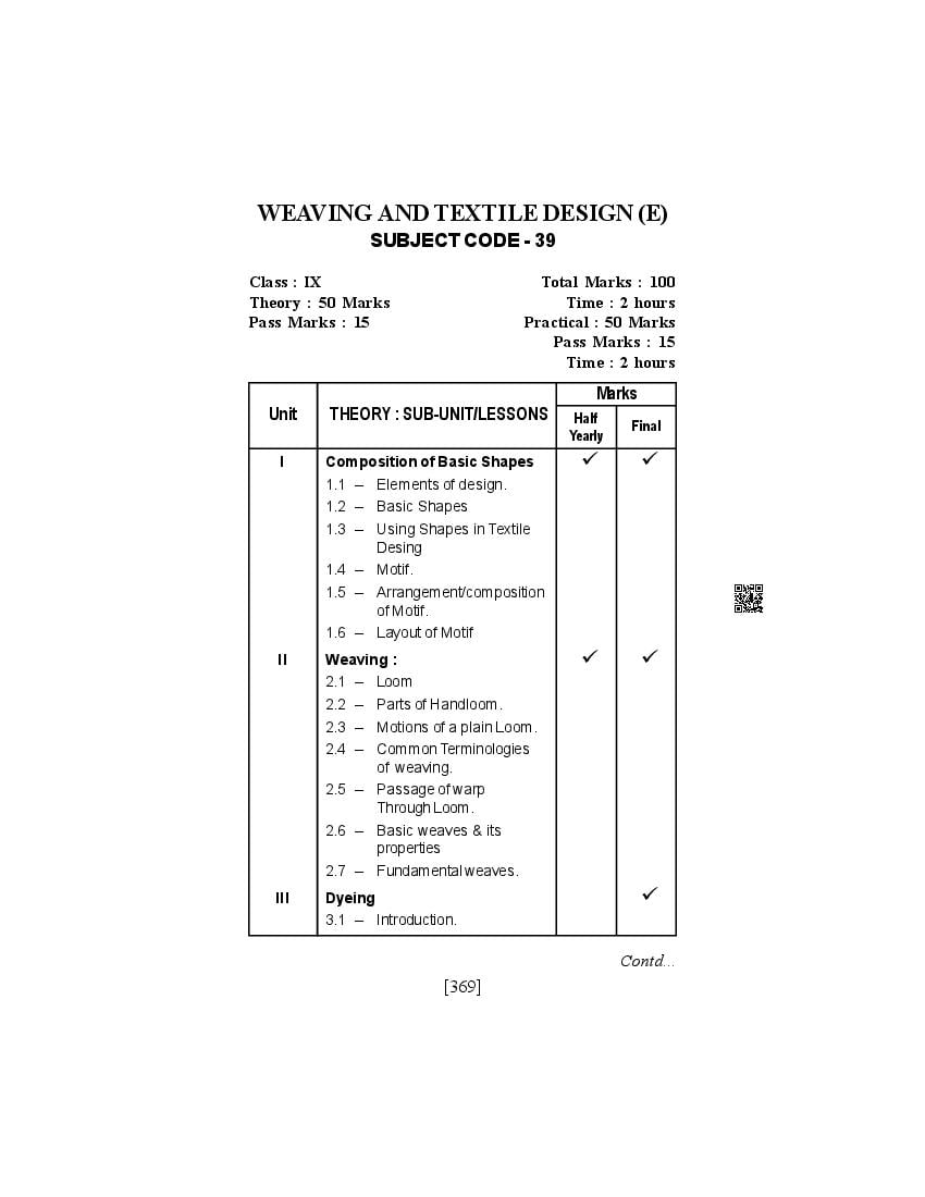 SEBA Class 9th & Class 10th Syllabus 2026 Weaving and Textile Design View Download