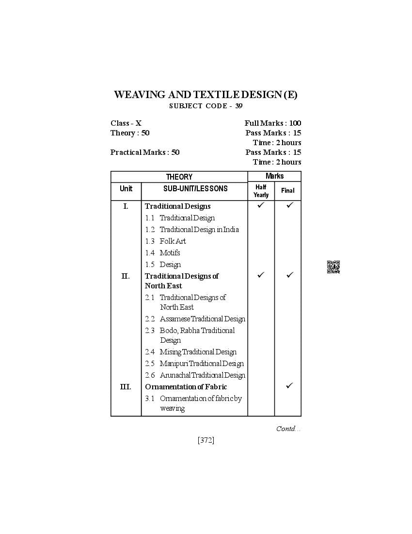 The SEBA syllabus for HSLC (Class 10) Weaving and Textile Design is as follows.