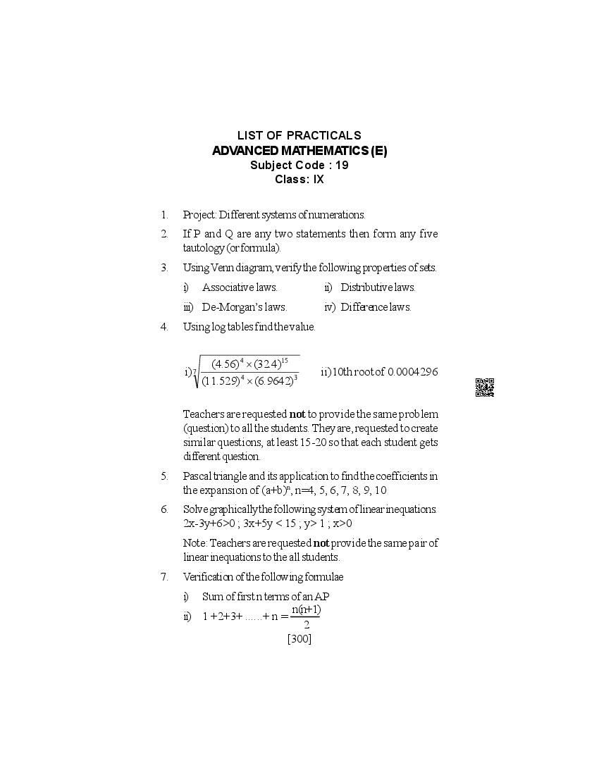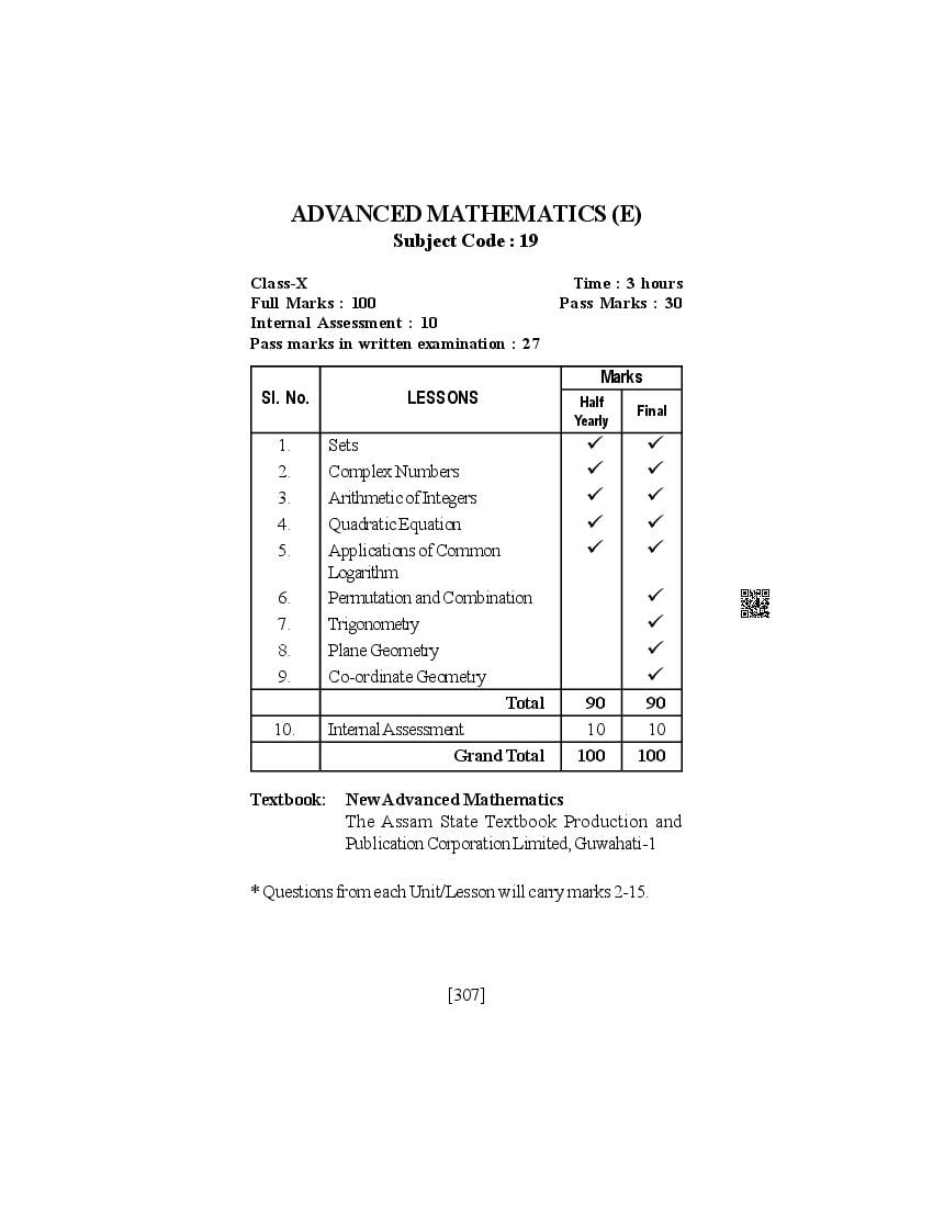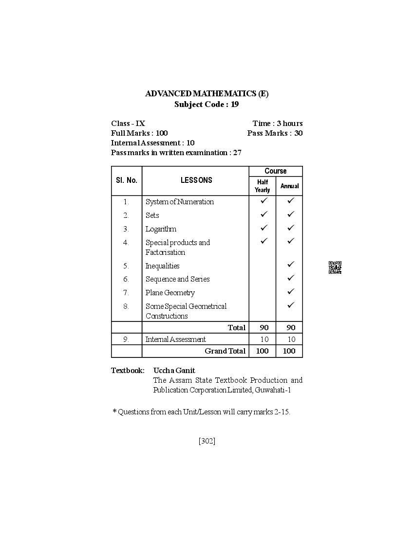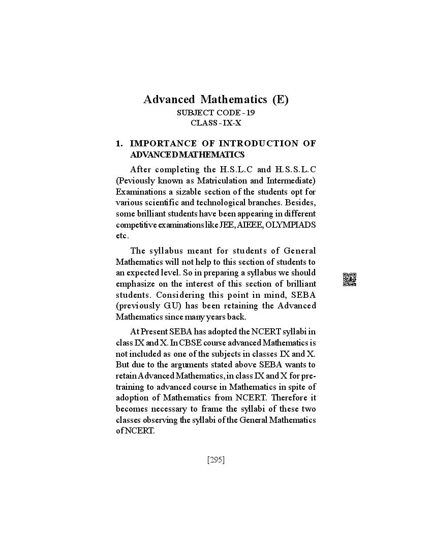 SEBA Class 9th & Class 10th Syllabus 2026 Advanced Mathematics View Download