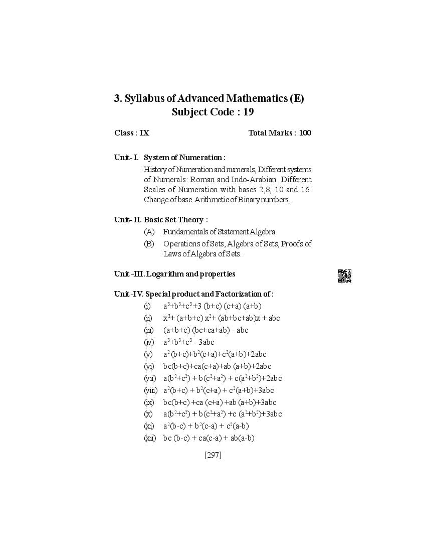 The SEBA syllabus for 9th (Class 9) Advance Maths is as follows.