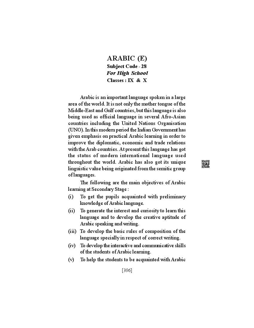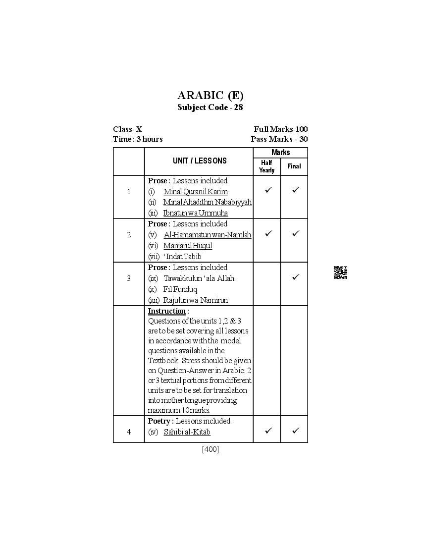 SEBA Class 9th & Class 10th Syllabus 2026 Arabic View Download