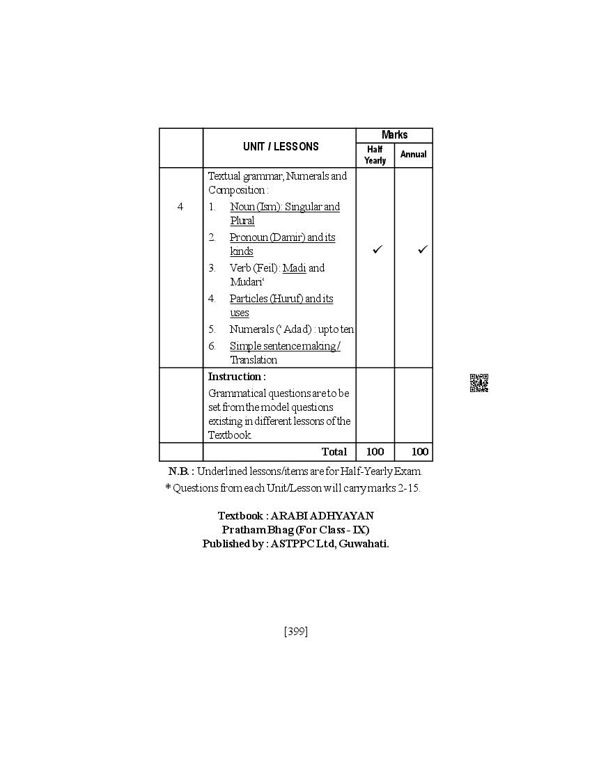 The board prescribes more subjects in addition to Arabic for 9th standard students. So the subject-wise syllabus for SEBA 9th are as follows.